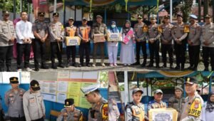 Krimsus86. Com. Baturaja 16 maret 2026,Kapolres OKU mendirikan pos pamantau arus mudik lebaran di depan City Mol Baturaja kabupaten OKU …