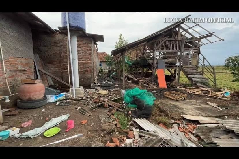 Lucky juga berkeliling melihat kondisi rumah warga yang rusak parah sembari memberikan dukungan moril kepada para korban.