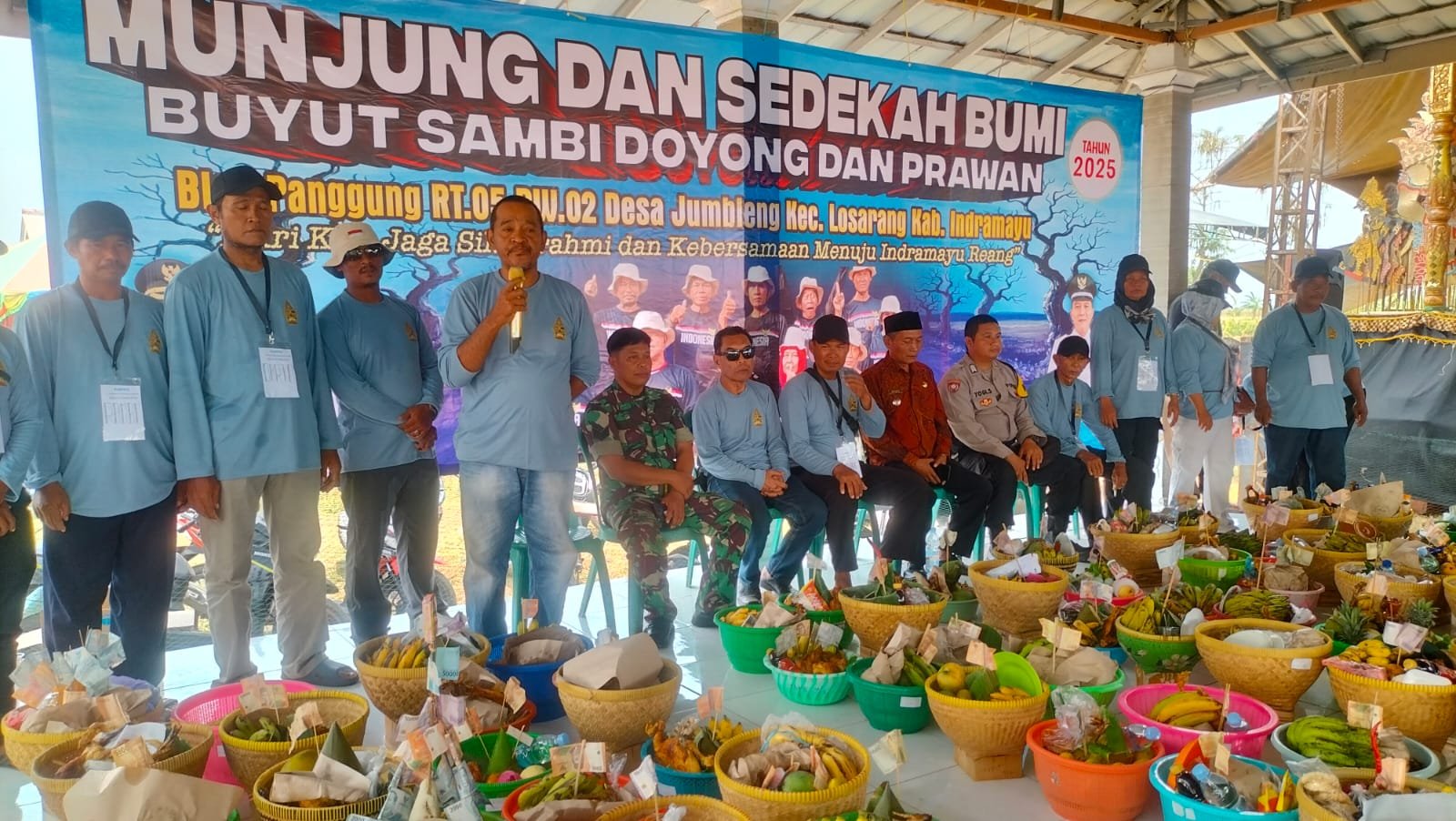 untuk memperelat silaturami masyarakat desa jumbleng yang turun temurun setiap 2 musim panen untuk rasa syukur atas keberasilan panen raya masyarakat desa jumbleng kecamatan losarang mengadakan ritual sedekah bumi yang arti ngunjung / munjung buyut sambi doyong dan Buyut prawan sebagai mengingat perjuangan tokoh legenda desa Jumbleng kecamatan Losarang Kabupaten Indramayu ( Wardono /Red .Jabar )