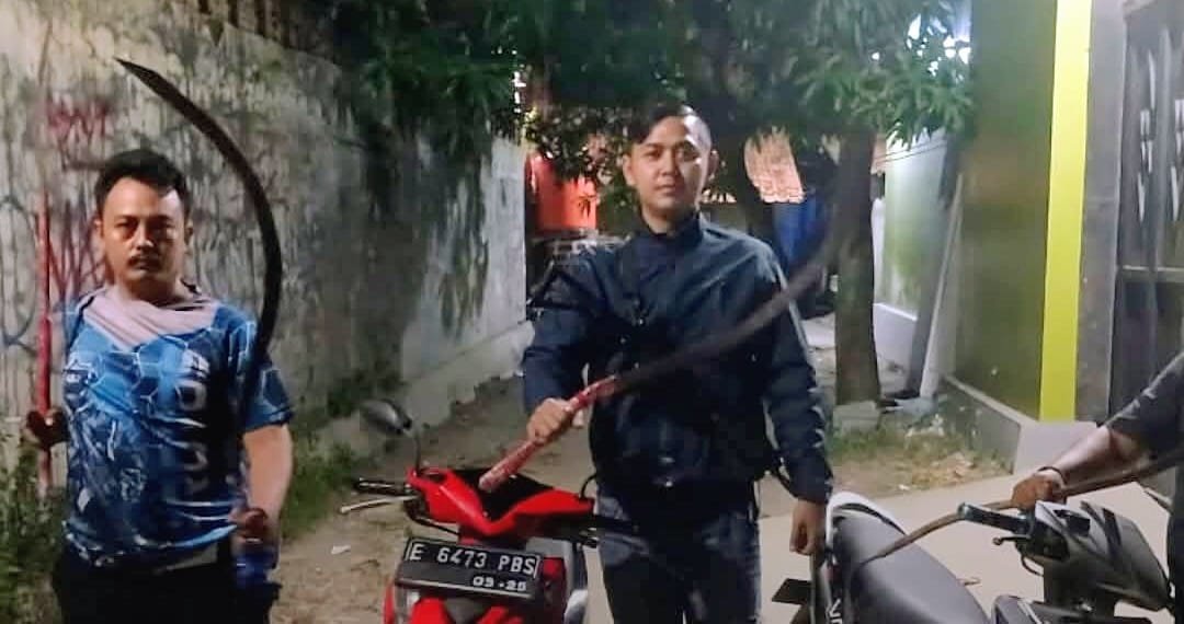 Di sana, petugas mengamankan empat bilah senjata tajam dan tiga unit sepeda motor yang ditinggalkan para pelaku.