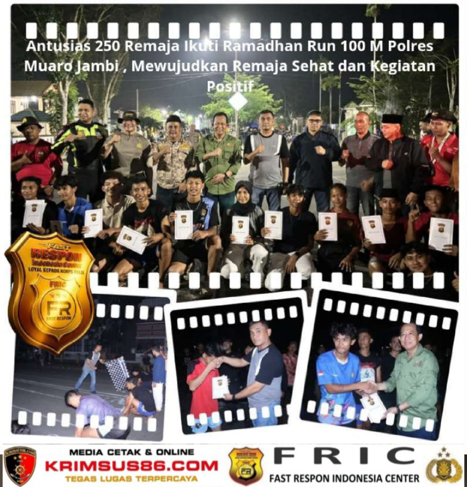 Krimsus86.com, Muaro Jambi, 28 Februari 2026 – Antusiasme ratusan remaja mewarnai kegiatan olahraga malam bertajuk “Ramadhan Run 100 M Polres Muaro Jambi” yang digelar di Area Perkantoran Bukit Cinto Kenang, usai pelaksanaan salat tarawih pukul 21.00 WIB.