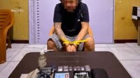 Dari lokasi kejadian, polisi mengamankan barang bukti berupa satu sachet sabu, alat hisab bong, kaca pirex, tas, dan dua buah HP.
