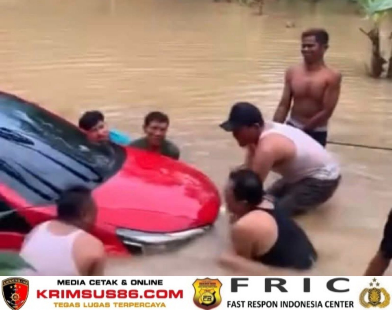 Krimsus86.com Indramayu, Jawa Barat – Hujan deras yang mengguyur wilayah Kabupaten Indramayu menyebabkan Sungai Cibanoang meluap dan memicu banjir di Desa Tanjungkerta, Kecamatan Kroya, pada Jumat, 17 April 2026. Dalam peristiwa tersebut, satu unit mobil milik warga sempat terseret arus banjir.