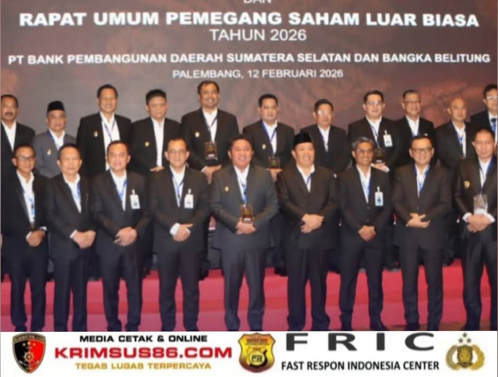 Krimsus86.com Palembang – Bupati Muara Enim, H. Edison, S.H., M.Hum., atas nama Pemerintah Kabupaten Muara Enim menghadiri Rapat Umum Pemegang Saham (RUPS) Tahun Buku 2025 dan RUPS Luar Biasa Tahun 2026 PT. Bank Pembangunan Daerah Sumatera Selatan dan Bangka Belitung (Bank Sumsel Babel/BSB) yang digelar di Hotel Novotel Palembang, Kota Palembang, Kamis (12/02).