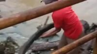 Warga Dusun 6 Jemenang Gotong Royong Bersihkan Tumpukan Kayu di Jembatan Sungai Rambang