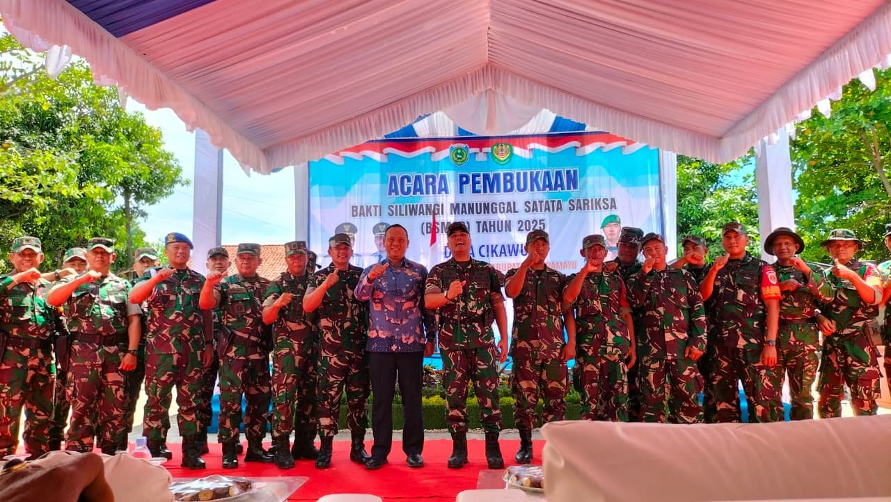 Krimsus86.com _ Indramayu Jawabarat , Komandan Kodim 0616/Indramayu, Letkol Inf. Yanuar Setyaga, S.I.P., meresmikan pembukaan kegiatan Bakti Siliwangi Manunggal Satata Sariksa (BSMSS) Tahun 2025 yang berlokasi di Desa Cikawung, Kecamatan Trisi, Kabupaten Indramayu. Kegiatan ini mengusung tema “TNI Berkolaborasi Mengabdi Kepada Negeri” dan dilaksanakan bekerja sama dengan Pemerintah Kabupaten Indramayu. 28/08/2025.