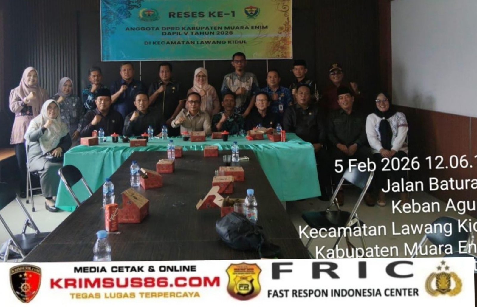 Krimsus86.com, Muara Enim – Dewan Perwakilan Rakyat Daerah (DPRD) Kabupaten Muara Enim Daerah Pemilihan (Dapil) V melaksanakan kegiatan Reses ke-I pada Jumat, 6 Februari 2026, dalam rangka menyerap dan menampung aspirasi masyarakat di Kecamatan Lawang Kidul dan Kecamatan Tanjung Agung.
