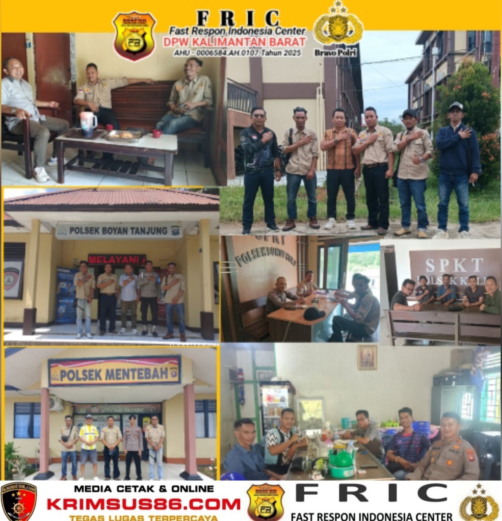 Krimsus86.com Kapuas Hulu, Kalimantan Barat, 11 April 2026 — Dalam upaya meningkatkan sinergitas antar lembaga serta mempererat silaturahmi, Fast Respon Indonesia Center (FRIC) Dewan Pimpinan Wilayah (DPW) Kalimantan Barat melaksanakan kunjungan ke jajaran Polres Kapuas Hulu dan sejumlah Polsek di wilayah hukumnya, pada 7 hingga 10 April 2026.