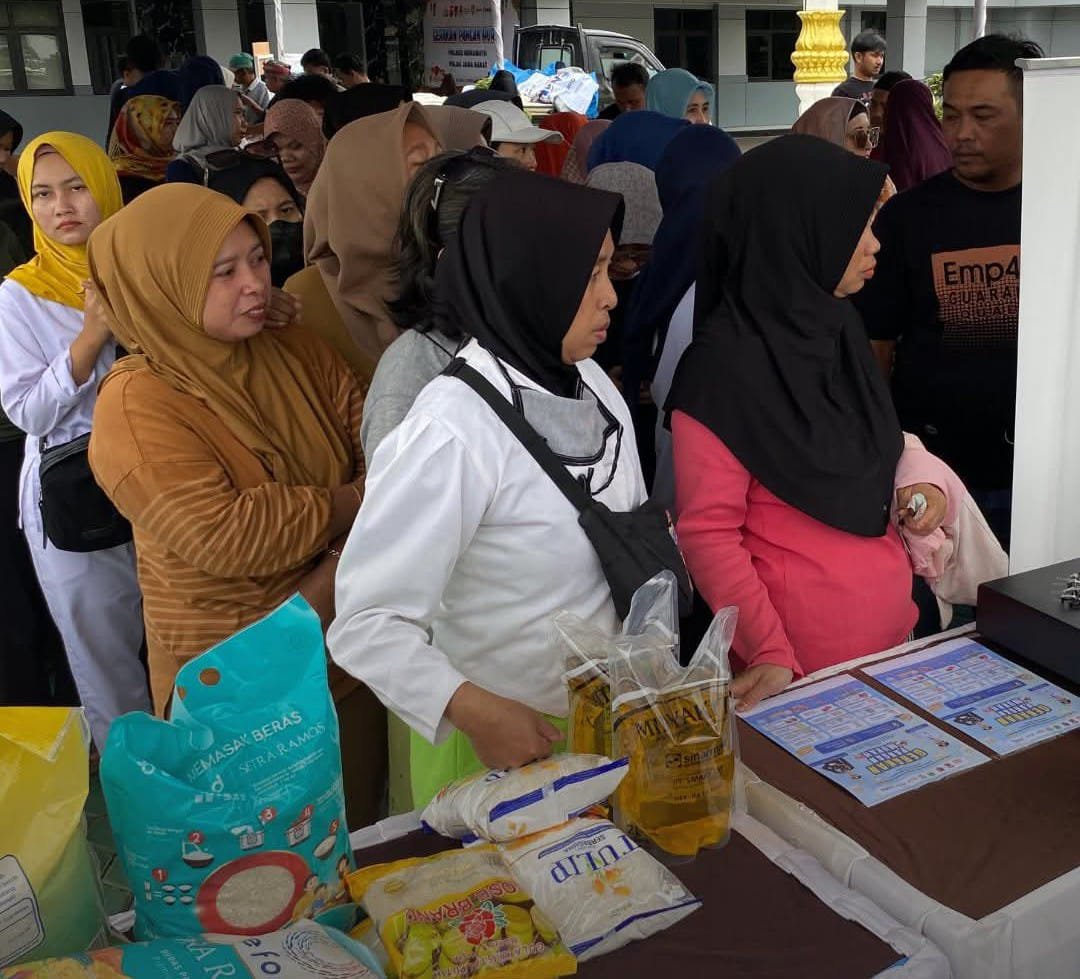 Sementara itu, Perum Bulog menyiapkan 2 ton beras SPHP, 50 dus minyak goreng, 200 kg gula pasir, dan 100 kg tepung terigu. Untuk komoditas yang disediakan Bulog, harga mengikuti Harga Eceran Tertinggi (HET), di antaranya beras SPHP Rp11.500/kg dan minyak goreng Rp15.700/liter.