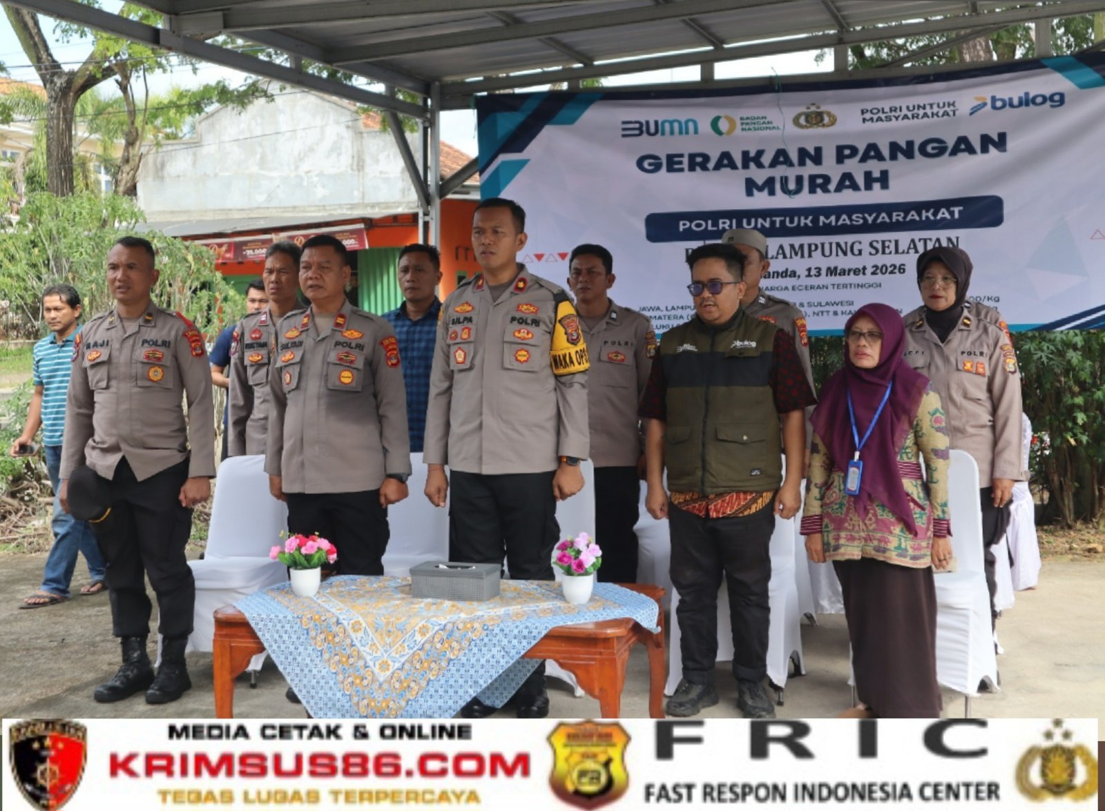 Krimsus86.com, Lampung Selatan, 13 Maret 2026 – Gerakan Pangan Murah Polri dilaksanakan di wilayah Kabupaten Lampung Selatan melalui kegiatan bazar atau pasar murah yang digelar di halaman Polsek Kalianda, Jumat (13/3/2026). Kegiatan tersebut mendapat sambutan positif dari masyarakat yang memanfaatkan kesempatan untuk membeli berbagai kebutuhan pokok dengan harga yang lebih terjangkau.