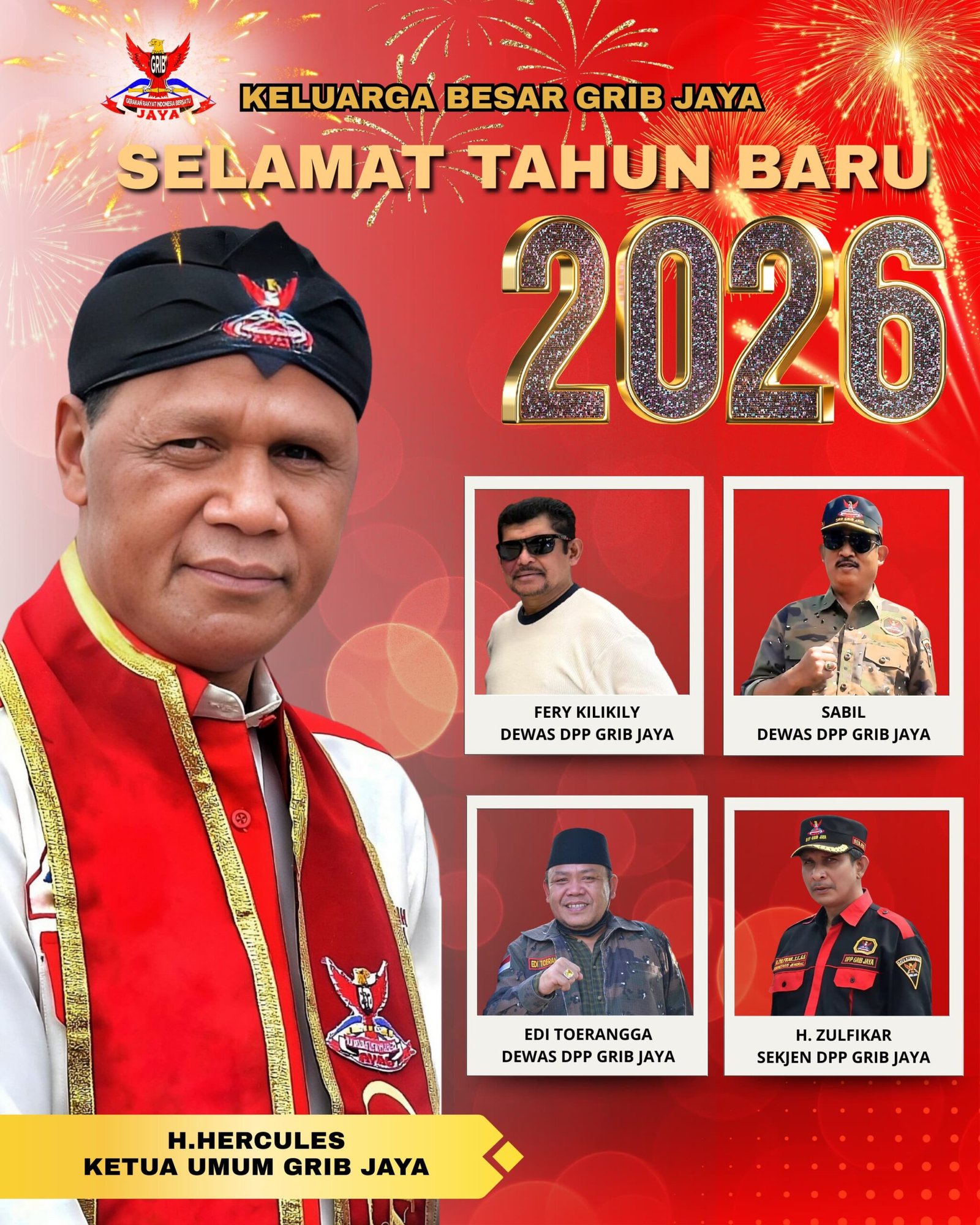 JAKARTA, — Keluarga Besar Gerakan Rakyat Indonesia Bersatu (GRIB) Jaya mengucapkan selamat Tahun Baru 2026 kepada seluruh masyarakat Indonesia.