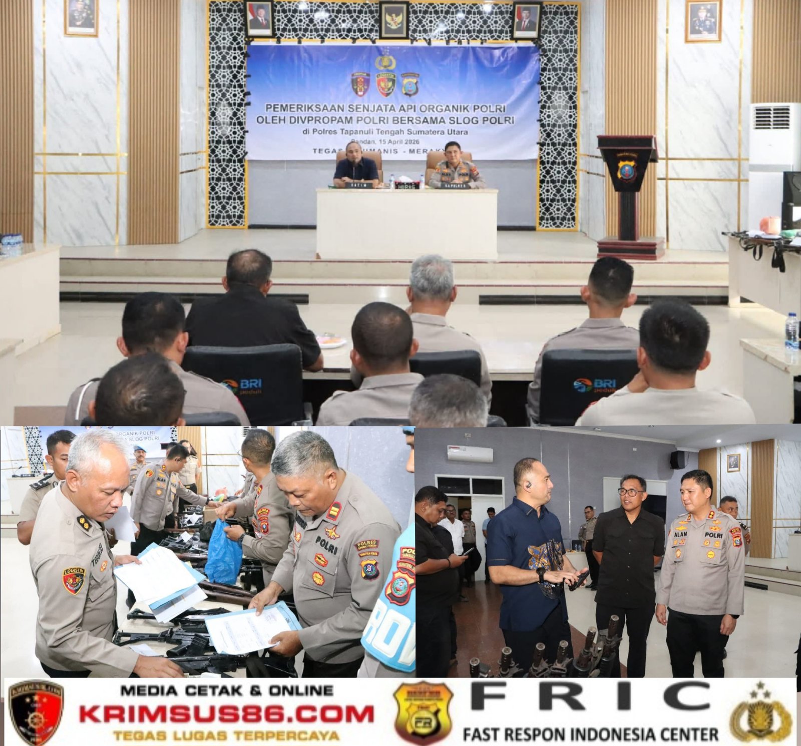 Krimsus86.com Tapanuli Tengah, 15 April 2026 — Dalam rangka meningkatkan pengawasan dan pengendalian terhadap penggunaan senjata api organik di lingkungan Kepolisian Negara Republik Indonesia, Divisi Profesi dan Pengamanan (Divpropam) Polri bersama Staf Logistik (Slog) Polri melaksanakan kegiatan inspeksi mendadak (sidak) di Polres Tapanuli Tengah, Rabu (15/04).