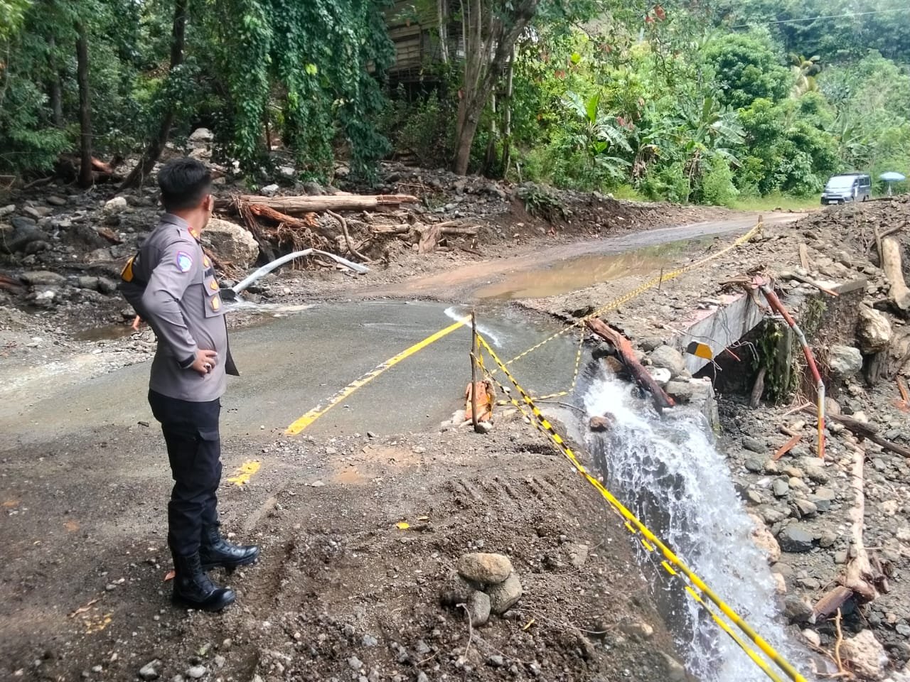 “Kami mengimbau kepada seluruh pengendara dan masyarakat untuk tetap waspada dan berhati-hati saat melintas di jalur ini, mengingat alat berat masih berada di lokasi untuk menuntaskan pembersihan material longsor yang berdampak parah. Kami juga terus memantau situasi dan akan bertindak cepat jika terjadi longsor susulan,” tutup Kapolsek Tojo