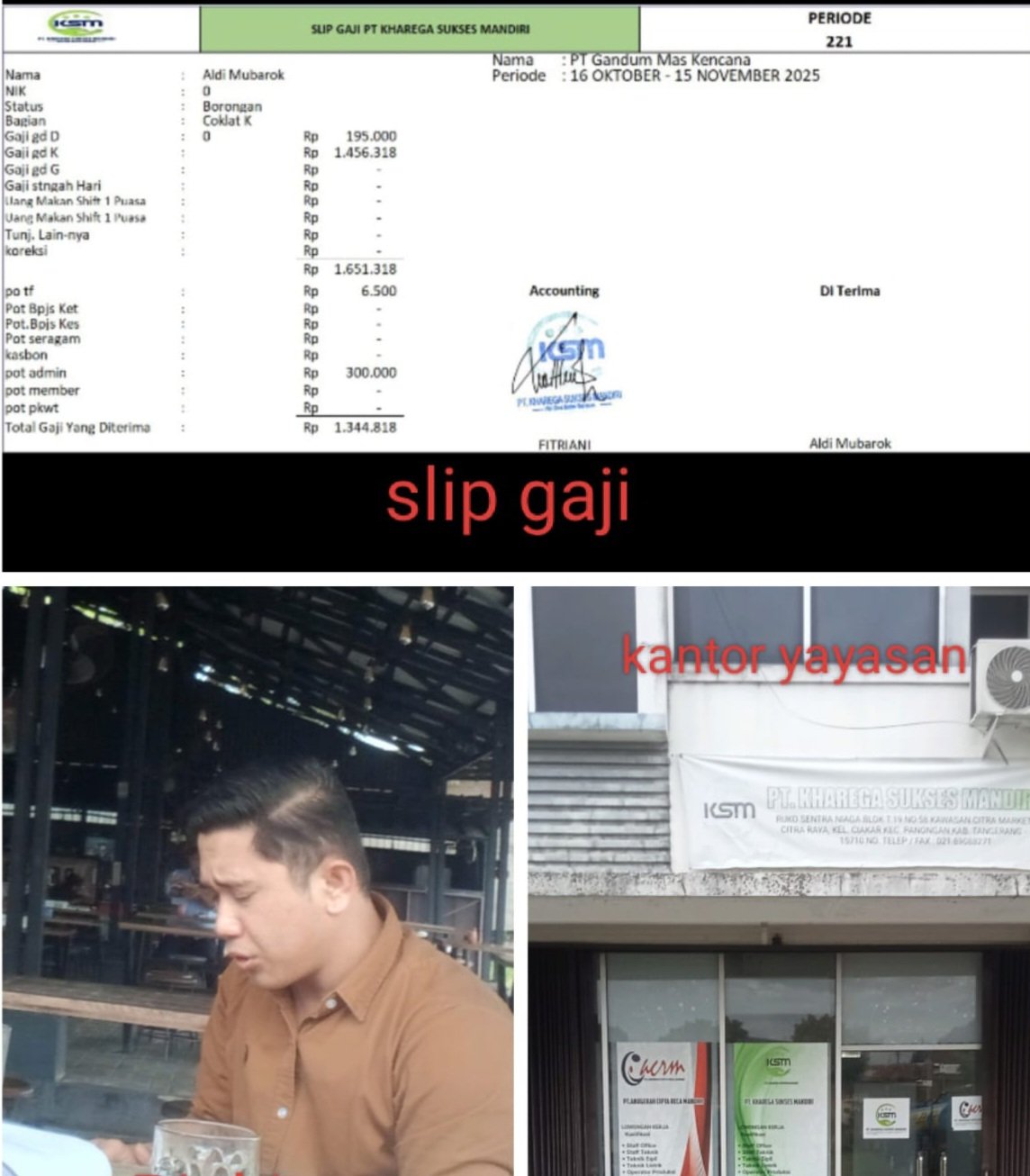 “Saya bekerja di PT Gandum Mas Kencana selama 45 hari, tetapi gaji yang saya terima hanya Rp1.651.310. Setelah dipotong TF sebesar Rp6.500 dan potongan administrasi Rp300.000, uang yang saya terima hanya Rp1.344.818. Ini sangat tidak sesuai dengan yang dijanjikan,” ungkap AM, Senin (15/12/2025).