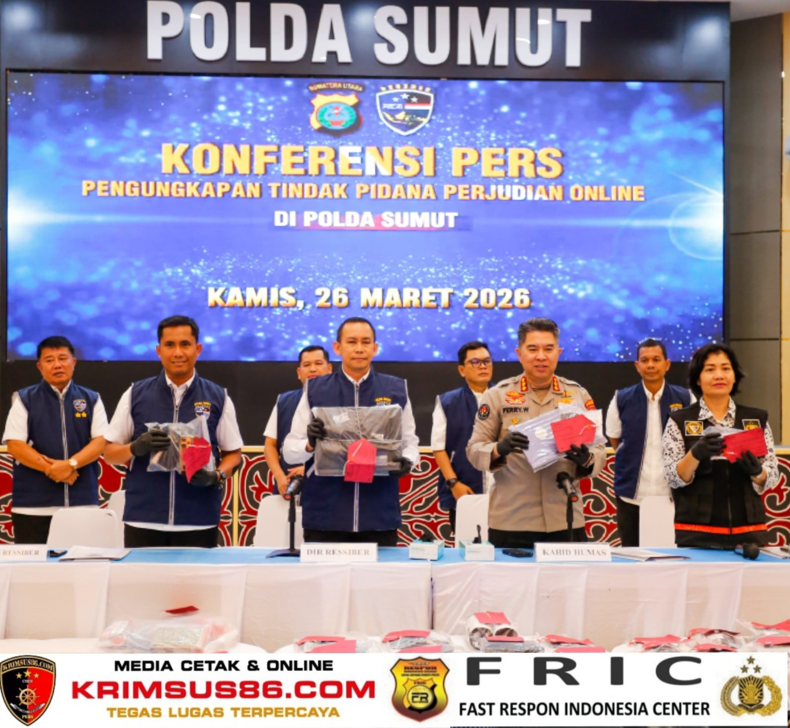 Pengungkapan itu disampaikan oleh Dirresiber Polda Sumut Kombes Pol Dr. Bayu Wicaksono dalam konferensi pers yang dibuka oleh Kabid Humas Polda Sumut Kombes Pol Ferry Walintukan di Aula Tribrata Polda Sumut, Kamis (26/3/2026).