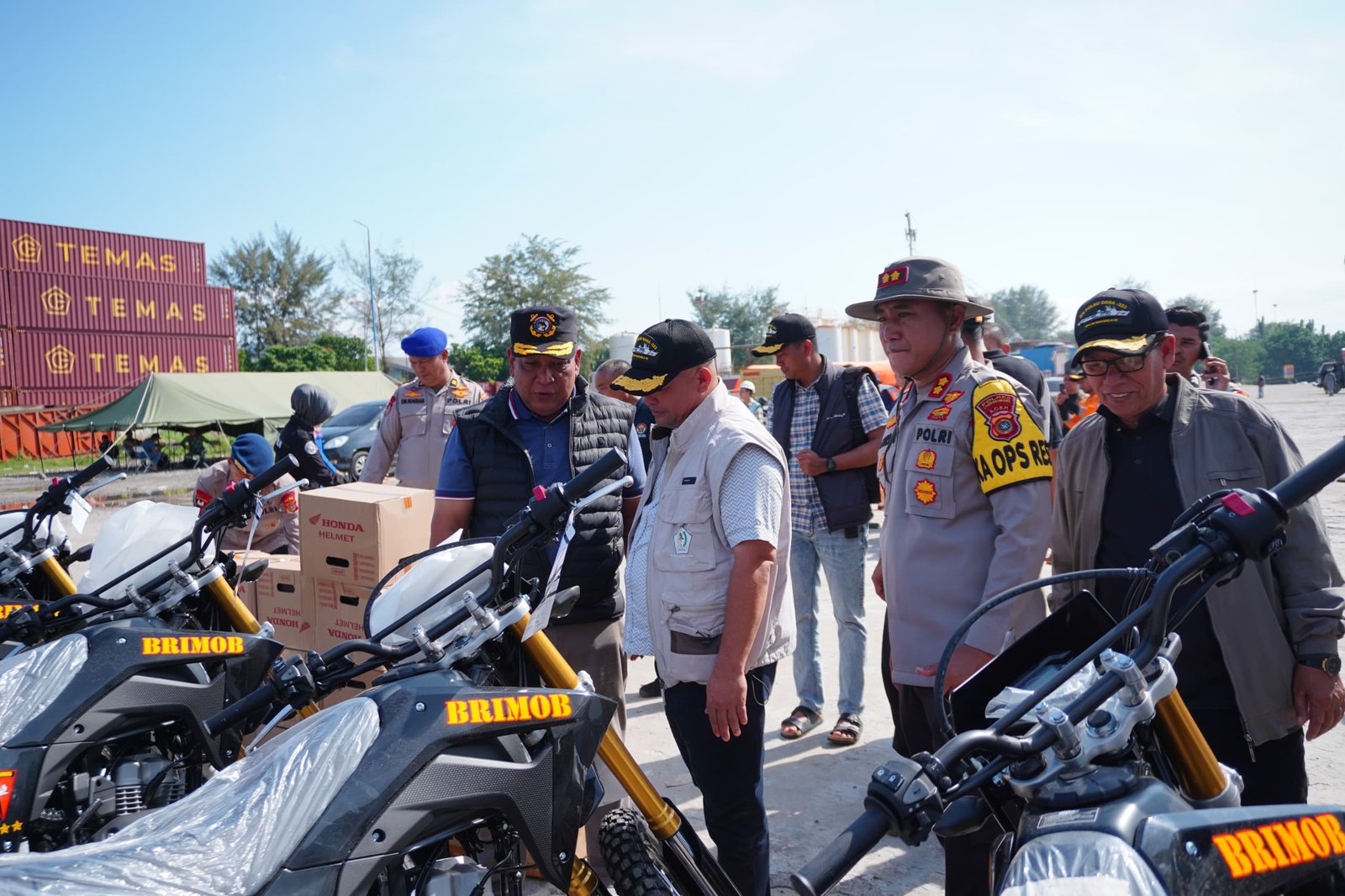“Pada hari ini Polres Lhokseumawe menerima bantuan logistik dari Mabes Polri berupa satu unit truk sembako, 13 unit sepeda motor Honda CRF 150 L yang diperuntukkan bagi Brimobda Polda Aceh, serta dua unit swab boat untuk mendukung operasional Satpolairud,” ujar AKBP Dr. Ahzan usai menyambut kedatangan Kapal MV Egon.