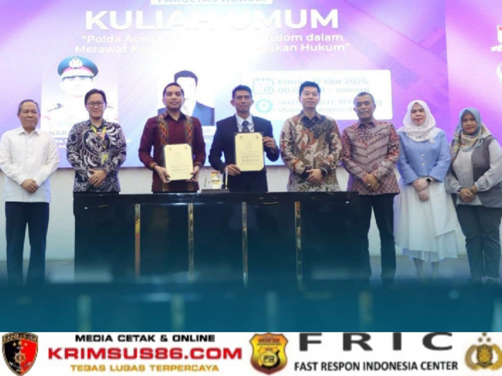 Krimsus86.com, Medan, 12 Maret 2026 – Kapolda Aceh, Irjen Pol. Drs. Marzuki Ali Basyah, M.M., memberikan kuliah umum di Universitas Prima Indonesia (Unpri) Medan dengan tema “Local Wisdom dalam Merawat Kamtibmas dan Penegakan Hukum”. Kegiatan ini diikuti oleh ratusan mahasiswa dan civitas akademika, berlangsung pada Kamis (12/3/2026).