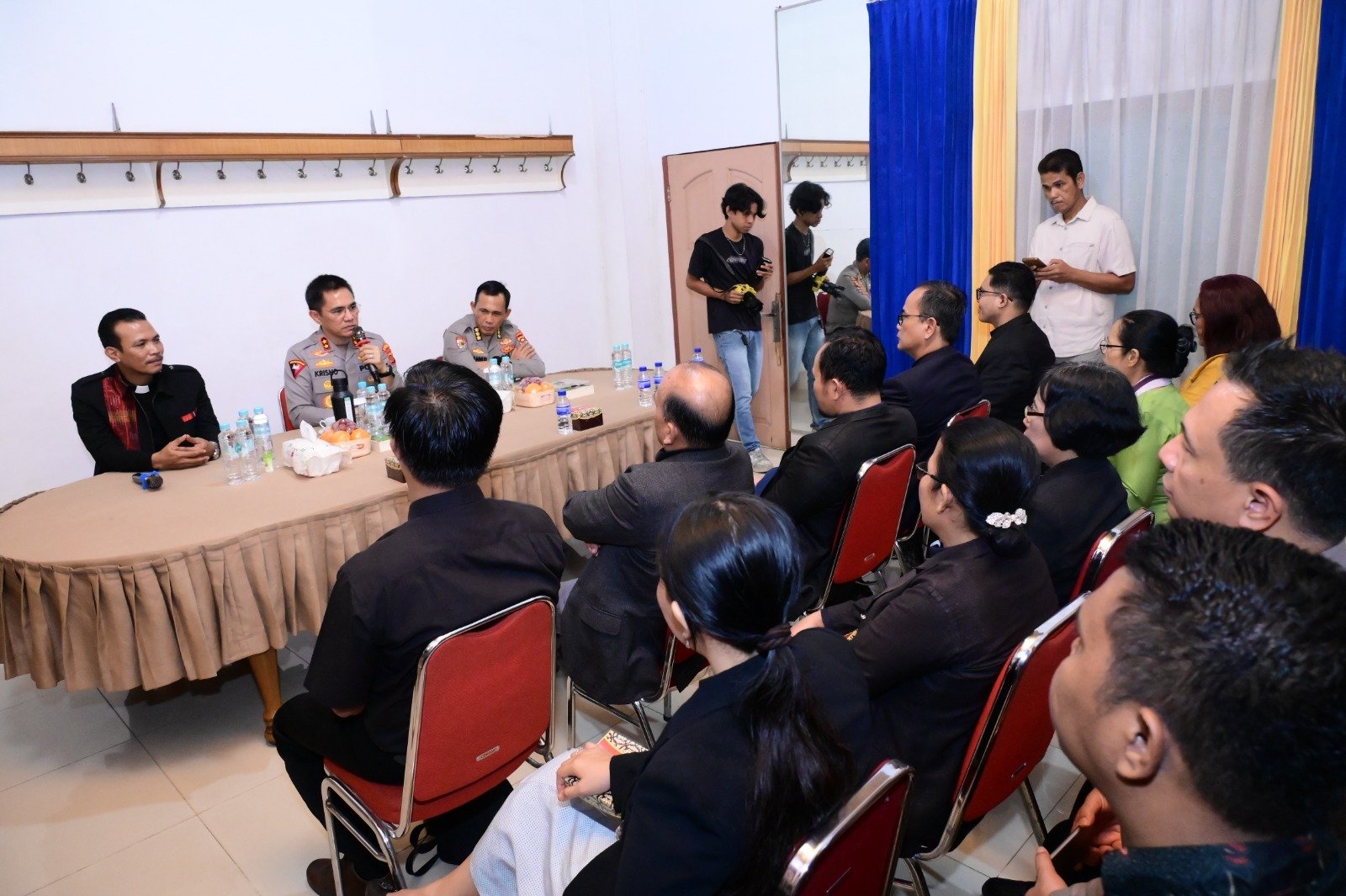 Kegiatan yang berlangsung pada Selasa (21/4/2026) tersebut turut dihadiri sejumlah pejabat utama Polda Jambi, di antaranya Irwasda, Dir Intelkam, Kabid Humas, serta Kapolresta Jambi. Kehadiran rombongan Polda Jambi disambut langsung oleh jajaran pengurus HKBP Jambi, termasuk Praeses HKBP Distrik XXV Jambi, Pendeta Kamson R.A. Pasaribu, bersama para pendeta dan pengurus gereja lainnya.