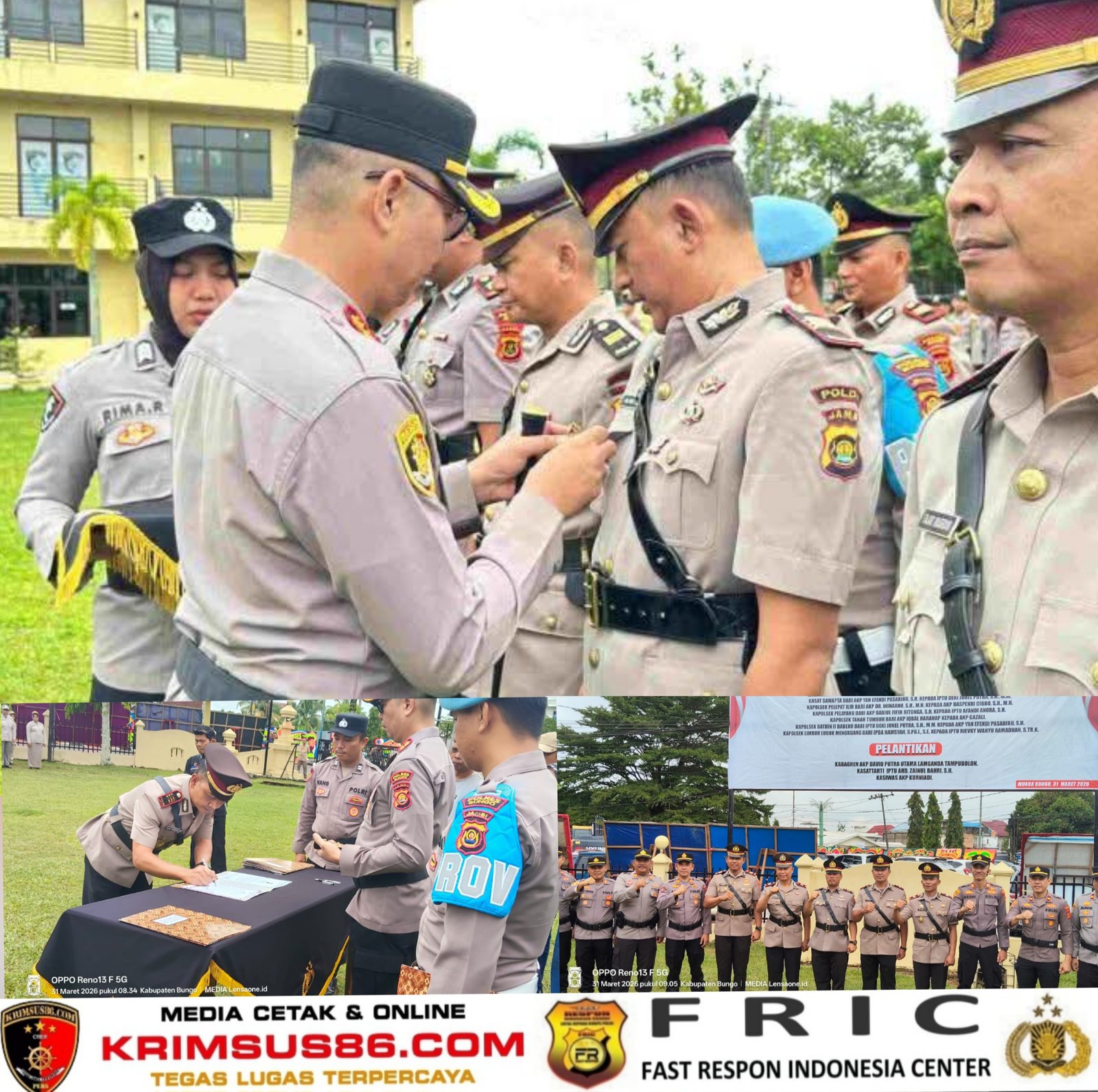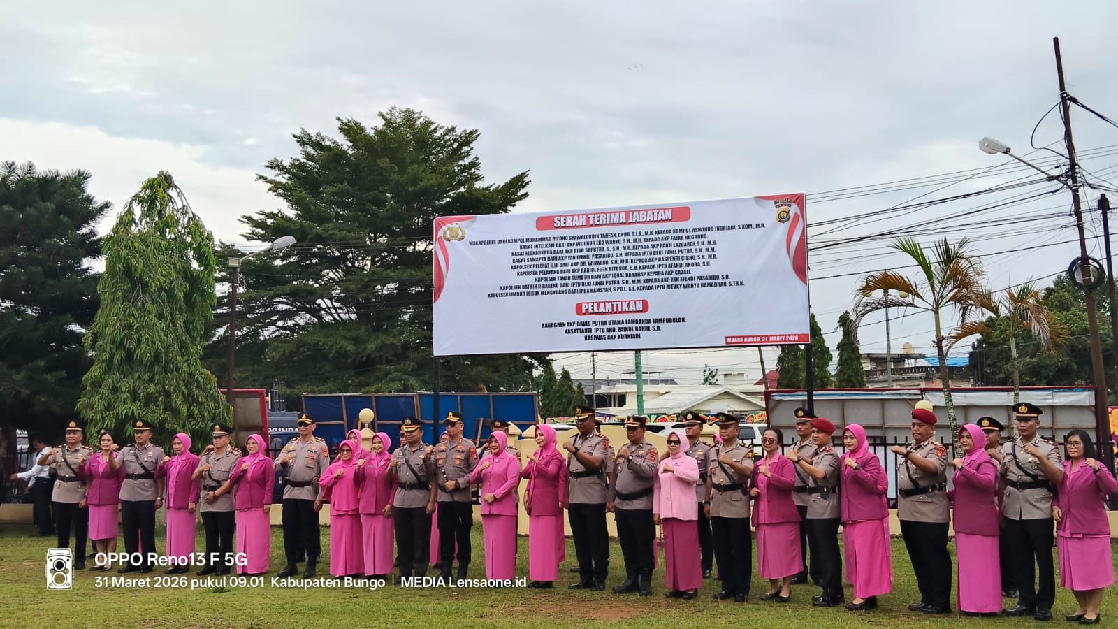 Krimsus86.com Bungo, 31 Maret 2026 — Kapolres Bungo, AKBP Zamri Elfino, memimpin langsung upacara serah terima jabatan (sertijab) Wakapolres serta sejumlah pejabat di lingkungan Polres Bungo. Kegiatan tersebut dilaksanakan di halaman Mapolres Bungo, Provinsi Jambi, Senin (31/3/2026).