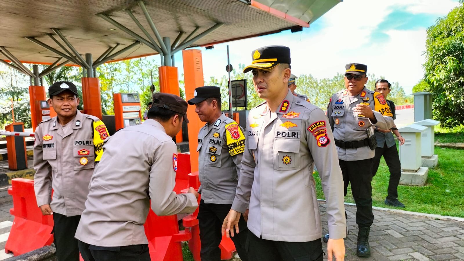 KAPOLRES INDRAMAYU AKBP MOCHAMAD FAJAR GEMILANG S.I.K,M.H,M.I.K. PENGECEKAN GERBANG TOL CIKEDUNG KECAMATAN TERISI KABUPATEN INDRAMAYU