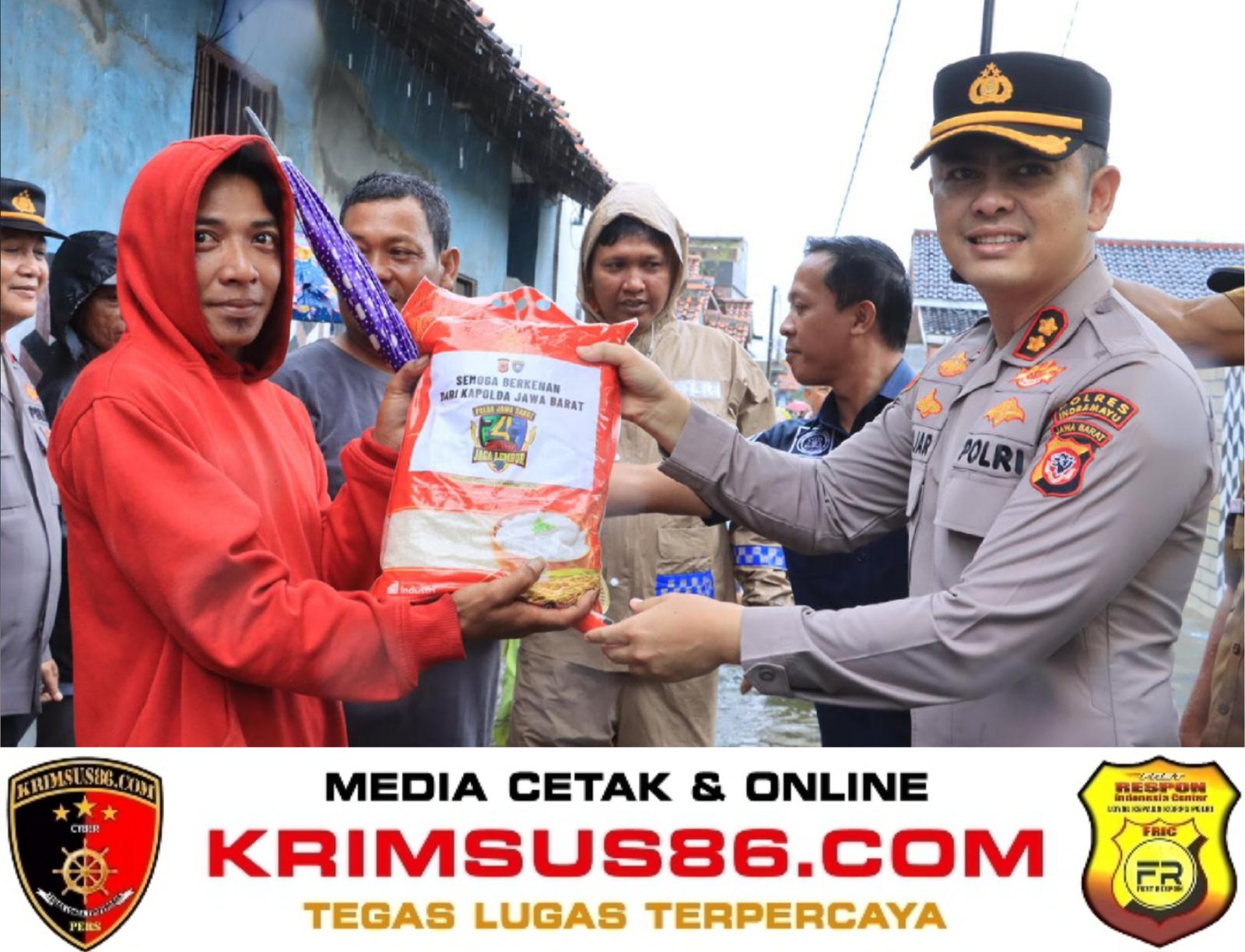 Krimsus86.com, Indramayu, Rabu (28/1/2026) – Kapolres Indramayu AKBP Mochamad Fajar Gemilang, S.I.K., M.H., M.I.K. turun langsung meninjau lokasi banjir sekaligus menyalurkan bantuan sosial kepada warga terdampak banjir di Gang Bakti, Kelurahan Lemahmekar, Kecamatan Indramayu, Kabupaten Indramayu, Selasa (27/1).