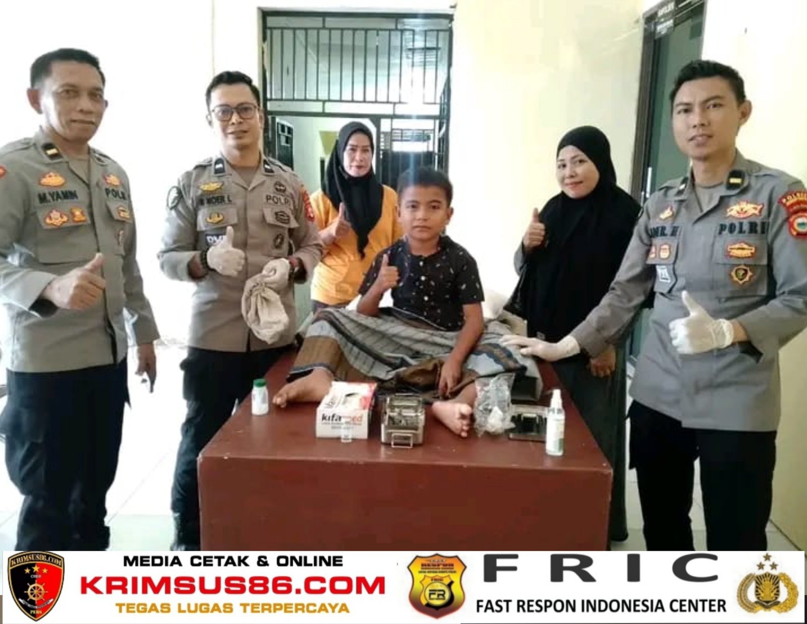 Pelayanan ini diberikan kepada M. Restu Anugrah (8), putra dari Sanuddin Dg. Rewa yang bekerja sebagai buruh harian lepas. Informasi mengenai kondisi anak tersebut diperoleh saat tim Klinik Sie Dokkes melakukan pelayanan kesehatan keliling kepada personel Polsek Bangkala.
