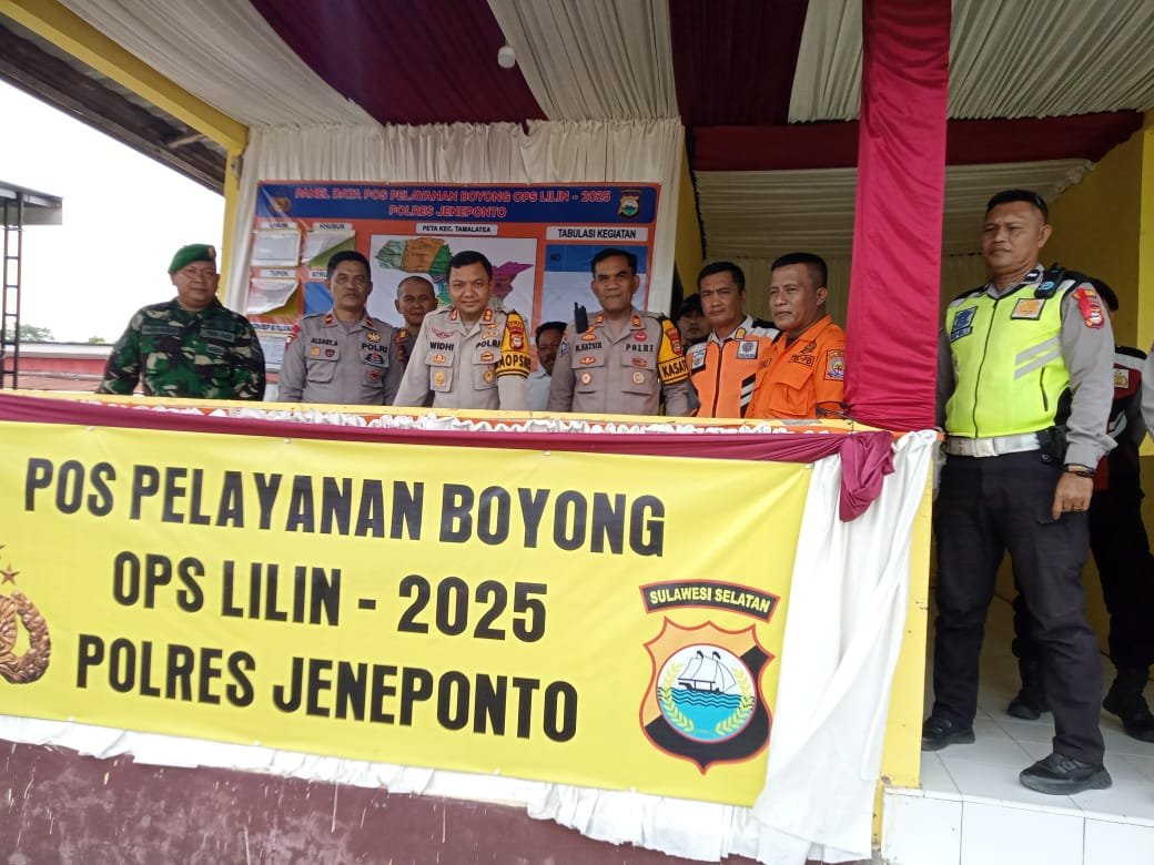 KRIMSUS86.COM – JENEPONTO – Guna memastikan kesiapan pengamanan perayaan Natal 2025 dan momen pergantian tahun, Kapolres Jeneponto AKBP Widi Setiawan, S.IK, M.IK, secara langsung melaksanakan inspeksi mendadak (sidak) ke Pos Pelayanan Operasi Lilin “Boyong”. Kunjungan berlangsung pada Kamis, 25 Desember 2025, di Kelurahan Tonrokassi Timur, Kecamatan Tamalatea.