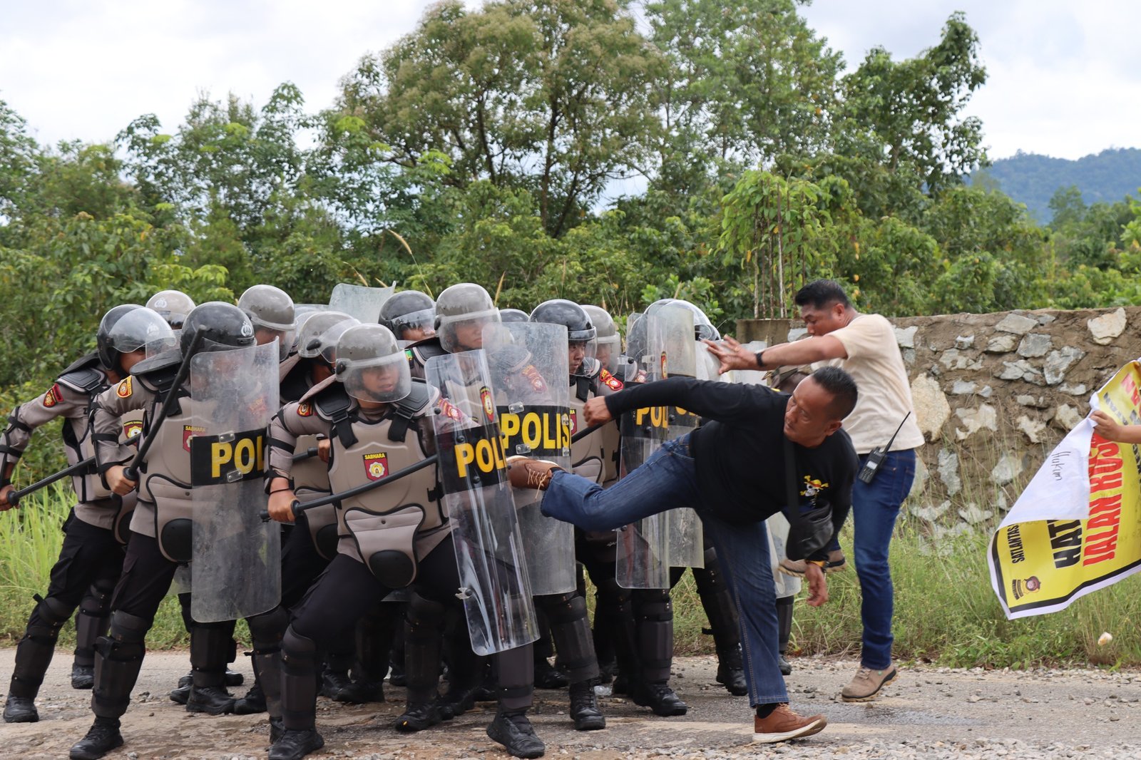 Seluruh personel Polres Melawi dan Bataliyon C Sat Brimobda Kalbar telah melaksanakan simulasi dengan baik dan profesional sesuai dengan tahapan – tahapan penanganan unjuk rasa.
