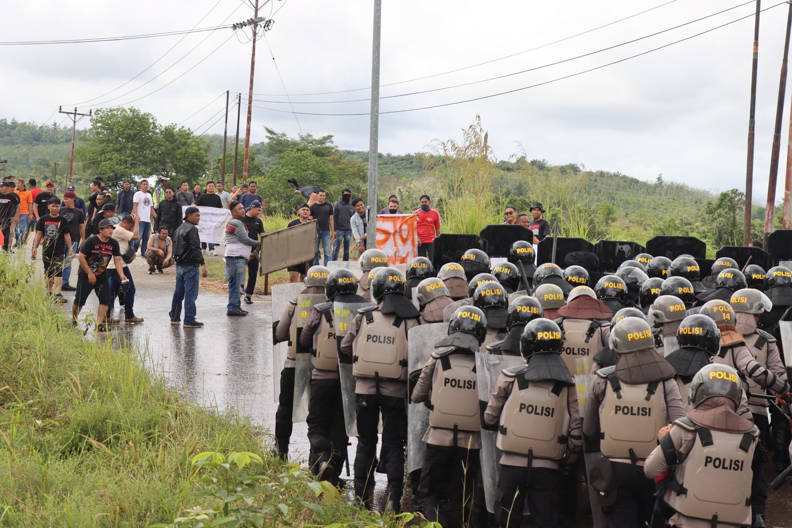 Tahapan penanganan aksi unjuk rasa telah dilakukan namun tetap memaksakan diri dan melakukan upaya provokasi dengan mendorong, berteriak hingga melakukan pelemparan benda yang membahayakan keselamatan petugas.