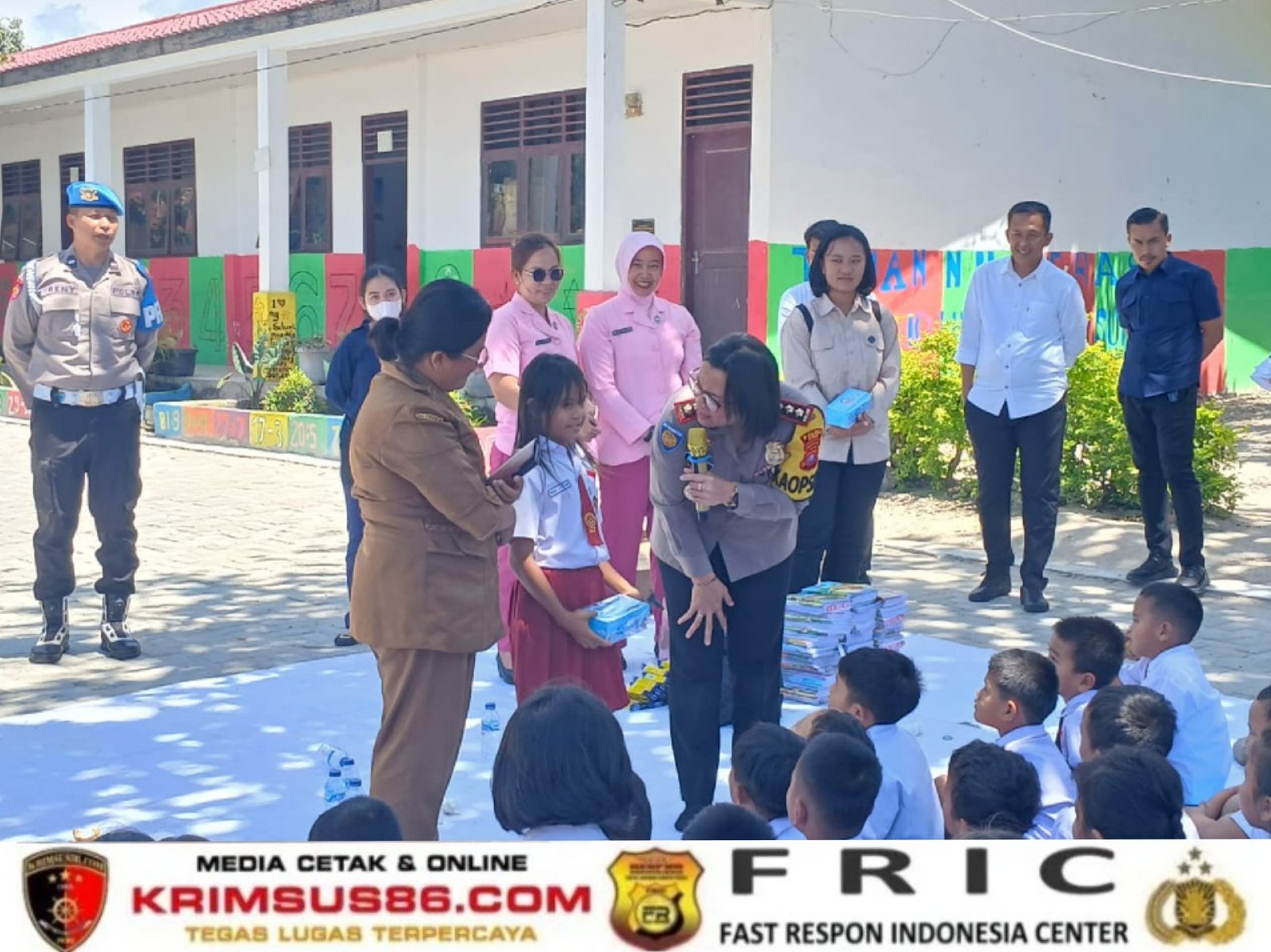 Selain meninjau langsung pelaksanaan program, Kapolres Samosir juga melaksanakan kegiatan sosial berupa pembagian alat belajar serta pemberian sepatu baru kepada siswa-siswi yang memiliki sepatu kurang layak pakai sebagai bentuk kepedulian Polri terhadap dunia pendidikan dan kesejahteraan anak-anak.