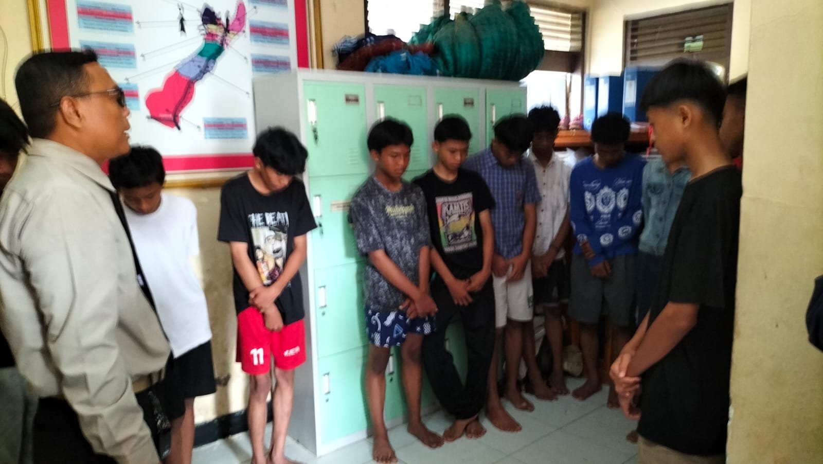 KRIMSUS86.COM – Indranayu Jawabarat Jum’at 19 Desember 2025 – Polres Indramayu, Polda Jabar polsek terisi,Kapolsek Terisi Akp Joni, S.H., bersama anggota melaksanakan kegiatan pembinaan dan himbauan kepada pelajar yang terjaring di lokasi tawuran desa Cikawung kecamatan terisi di makopolsek terisi.