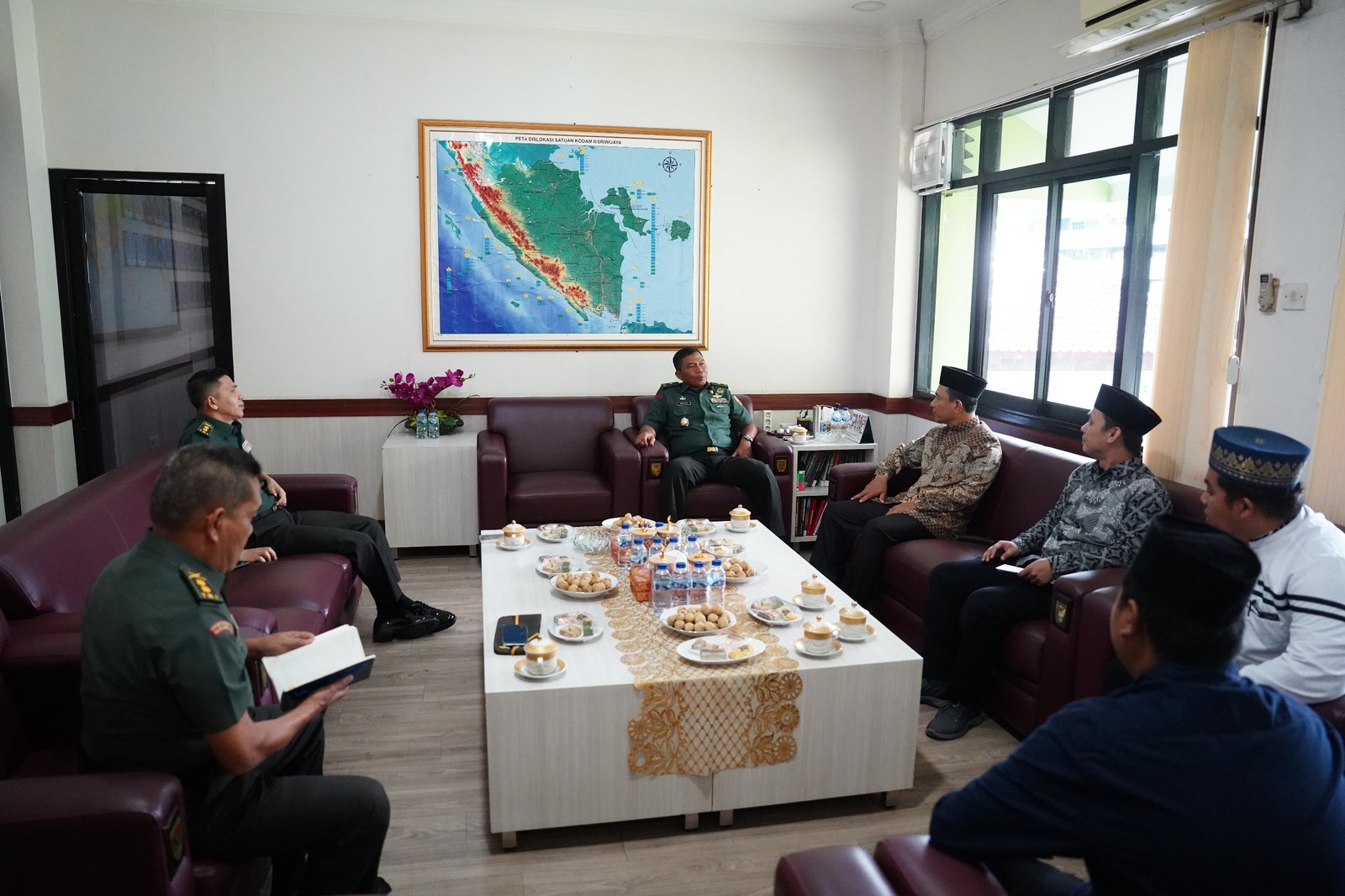 Kasdam II/Sriwijaya menyampaikan apresiasi atas kunjungan PW RMI NU Sumatera Selatan dan berharap hubungan harmonis antara TNI dan para ulama serta santri dapat terus terjalin dengan baik.