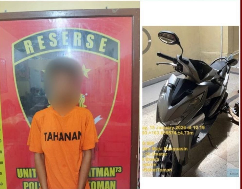 Krimsus86.com, MUSI BANYUASIN – Seorang pria berinisial Sulaiman alias Memet (26), warga Kelurahan Mangun Jaya, Kecamatan Babat Toman, Kabupaten Musi Banyuasin (Muba), harus berurusan dengan pihak kepolisian setelah terbukti melakukan pencurian sepeda motor milik saudaranya sendiri. Pelaku diserahkan langsung oleh pihak keluarga dan korban ke Mapolsek Babat Toman, Selasa (13/01/2026) sore sekitar pukul 16.00 WIB.