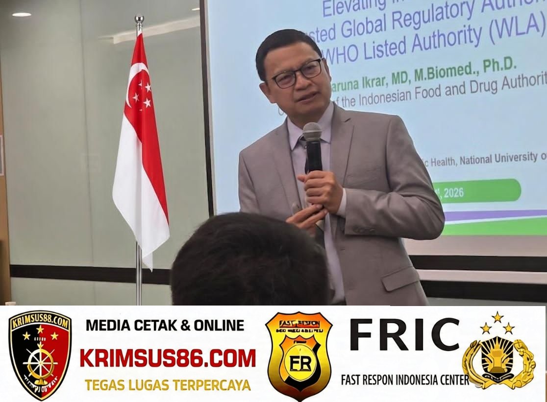 Krimsus86.com Singapura, 21 April 2026 — Kepala Badan Pengawas Obat dan Makanan Republik Indonesia (BPOM RI), Taruna Ikrar, menjadi pembicara dalam kuliah pakar di National University of Singapore (NUS), salah satu perguruan tinggi terbaik dunia.