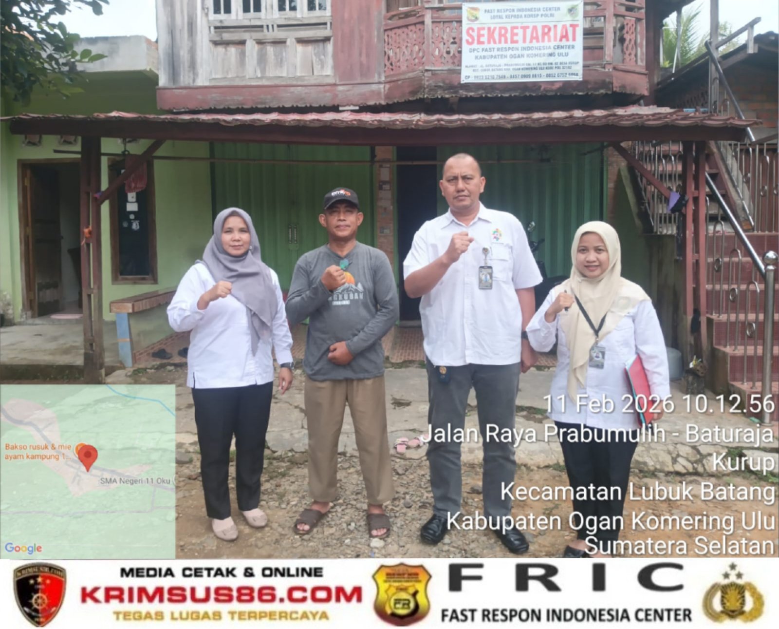 Krimsus86.com, Baturaja, 11 Februari 2026 – Badan Kesatuan Bangsa dan Politik (Kesbangpol) Kabupaten Ogan Komering Ulu (OKU), Provinsi Sumatera Selatan, melaksanakan kunjungan dan survei ke Kantor Sekretariat Dewan Pimpinan Cabang Fast Respon Indonesia Counter (DPC FRIC) Kabupaten OKU, Rabu (11/2).
