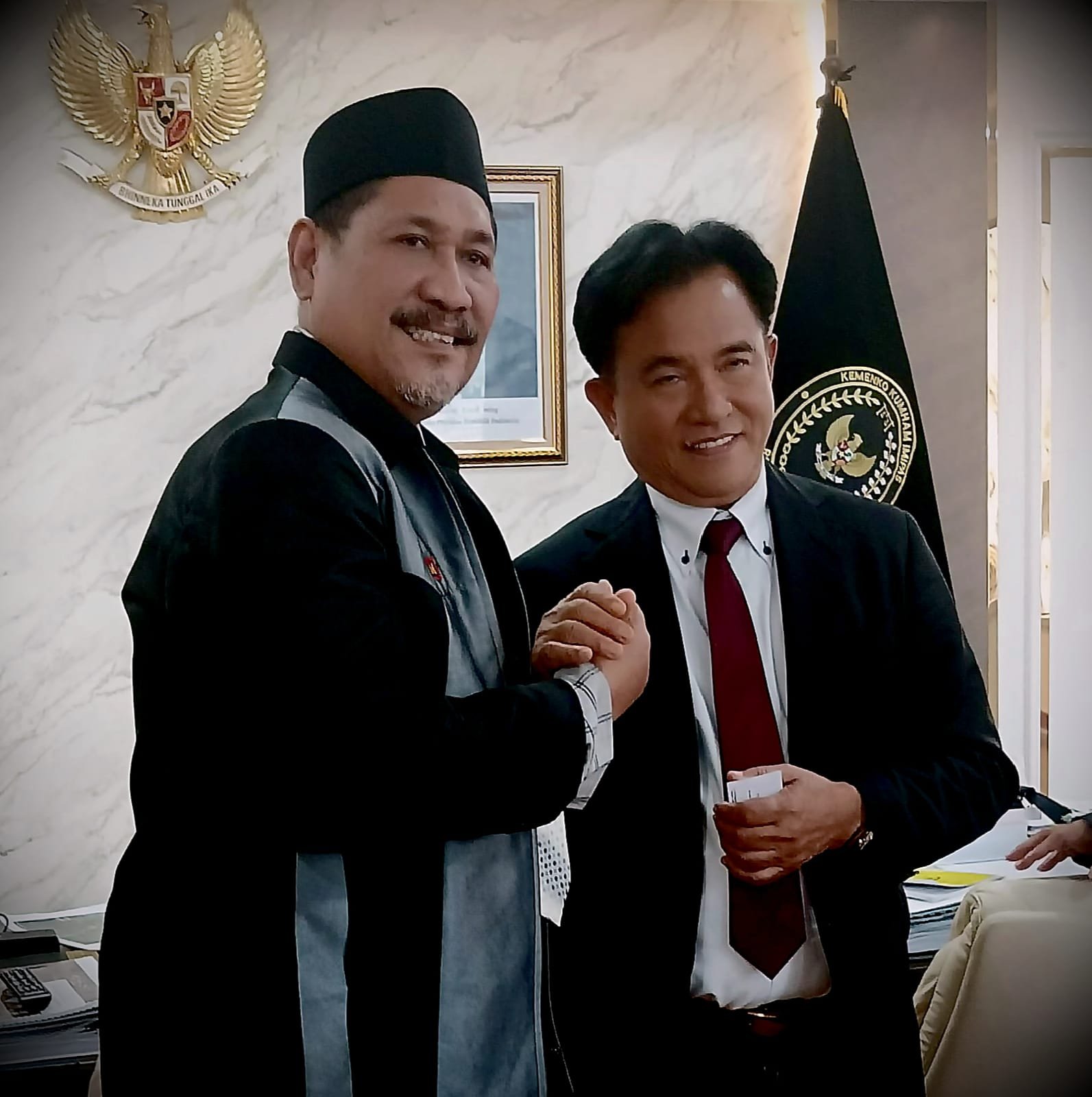 Pertemuan tersebut berlangsung dalam suasana hangat dan penuh keakraban, mencerminkan hubungan lama antara Ketua Umum PB FORMULA, Tuan Guru Drs. Dedi Hermanto, dengan Prof. Yusril Ihza Mahendra.