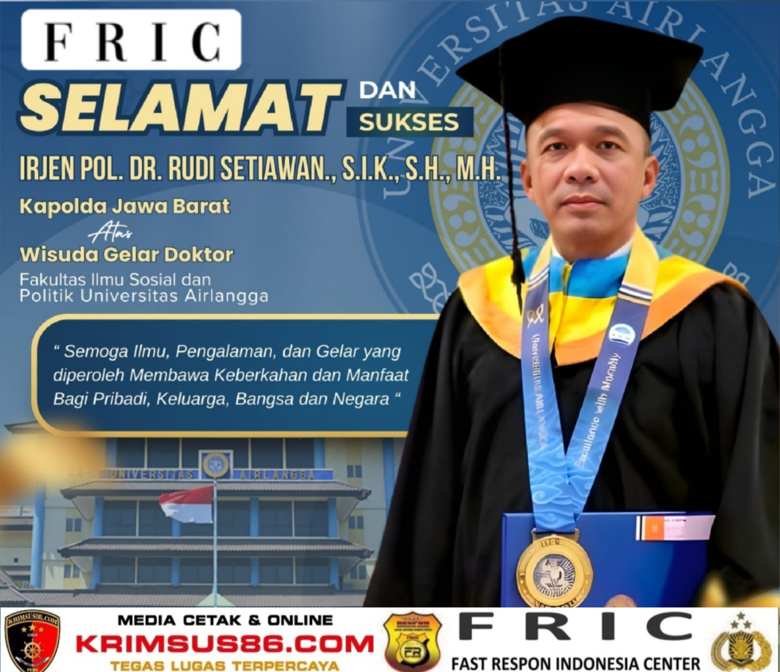 “Atas nama seluruh jajaran FRIC, kami mengucapkan selamat dan sukses atas diraihnya gelar doktor oleh Bapak Irjen Pol. Dr. Rudi Setiawan. Ini membuktikan bahwa dedikasi terhadap pendidikan dapat berjalan selaras dengan pengabdian kepada bangsa dan negara,” ujarnya.