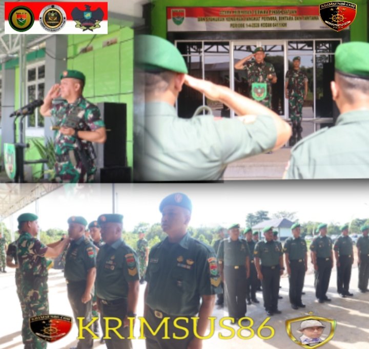 Lampung Tengah / Krimsus86.com Bertempat di Aula Garasi Makodim 0411/KM, Terbanggi Besar, Komandan Kodim (Dandim) 0411/KM Letkol Inf Noval Darmawan, S.H., M.I.P., memimpin langsung jalannya upacara Serah Terima Jabatan (Sertijab) Kepala Staf Kodim (Kasdim) 0411/KM serta Laporan Pindah Satuan Pabung Lamteng Mayor Cba Suyatno,S.Psi. dilanjutkan Korpsraport Kenaikan Pangkat Bintara dan Tamtama periode 1 April 2026, Senin (06/04/2026).