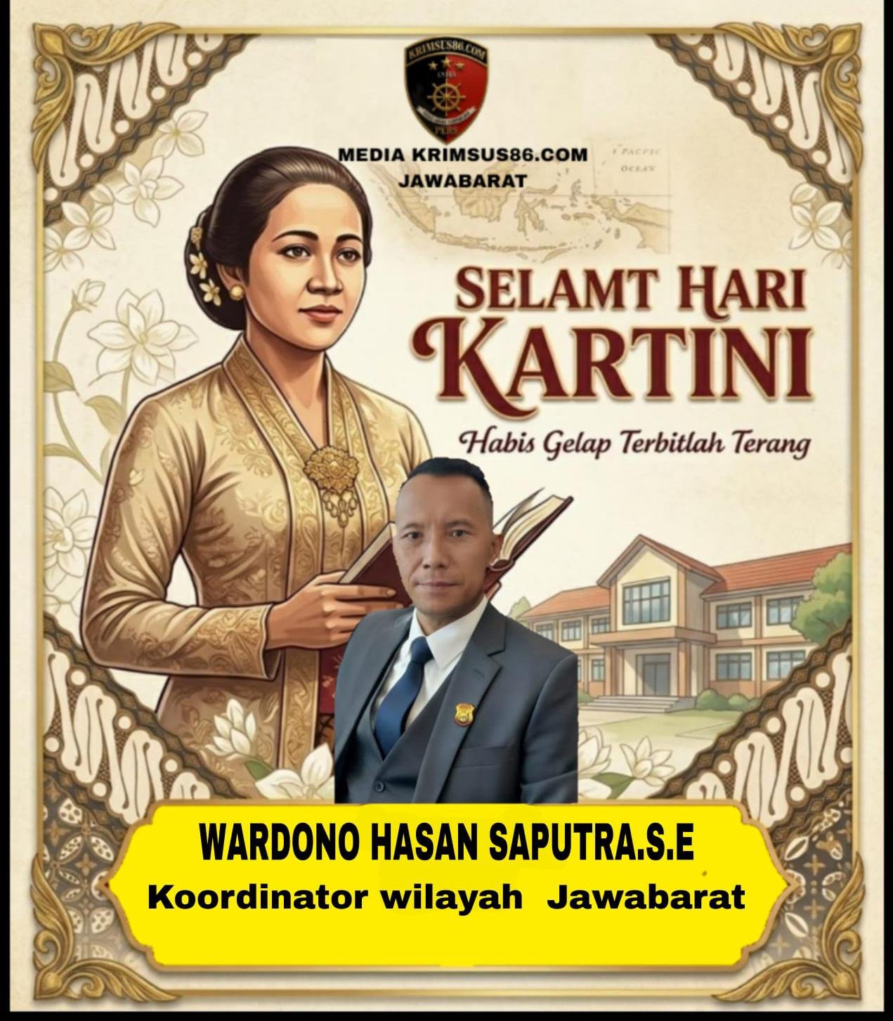 Krimsus86.com Bandung, 21 April 2026 — Koordinator Wilayah Jawa Barat media Krimsus86.com, Wardono Hasan Saputra, menyampaikan ucapan Selamat Hari Kartini kepada seluruh perempuan Indonesia dalam rangka peringatan Hari Kartini tahun 2026.