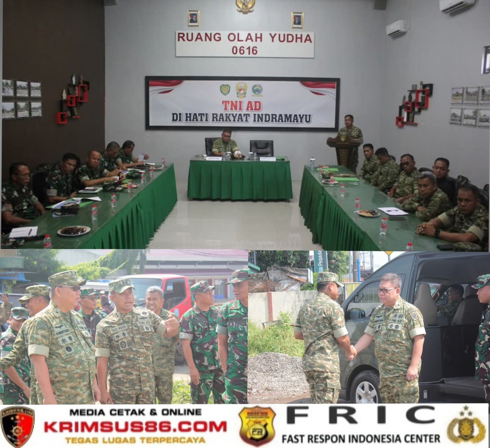 Krimsus86.com Indramayu, 17 April 2026 — Komandan Kodim (Dandim) 0616/Indramayu Letkol Arm Tulus Widodo, S.E., M.Han., mendampingi Komandan Korem 063/Sunan Gunung Jati (Danrem 063/SGJ) Kolonel Inf Hista Soleh Harahap, S.I.P., M.I.P., M.Han., dalam menerima kunjungan Tim Supervisi KDKMP dari Kapok Sahli Pangdam III/Siliwangi Brigjen TNI Robertson Ismail, S.I.P., M.Si., M.M., di wilayah Kodim 0616/Indramayu, Jumat (17/4/2026).