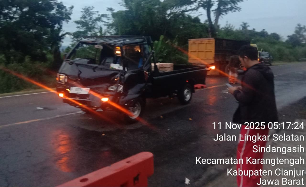 Krimsus86.com – Cianjur, 11 November 2025 — Kecelakaan lalu lintas terjadi di Jalan Raya Veteran No. 67, Desa Salaawi, Kabupaten Cianjur, tepat di depan Gedung RSPA Wicaksana Lagawa Satlantas Polres Cianjur, pada Selasa (11/11/2025) sekitar pukul 04.30 WIB.