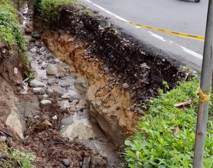 Berdasarkan pantauan di lapangan, ketiadaan parit menyebabkan aliran air hujan langsung menggerus bahu jalan. Kondisi ini mengakibatkan struktur tanah di sisi jalan menjadi labil dan berpotensi amblas. Jika tidak segera dilakukan penanganan, kerusakan dikhawatirkan akan semakin parah dan membahayakan keselamatan para pengguna jalan.