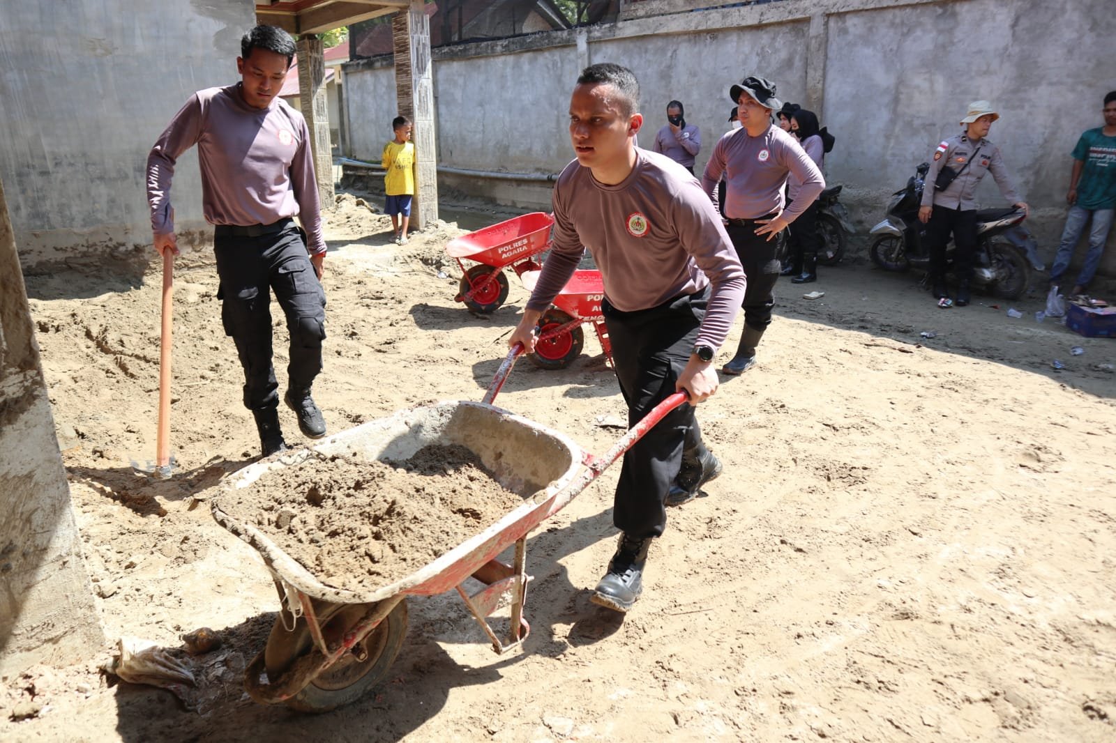 Mahasiswa STIK Angkatan 83/WPS Bersama Polres Aceh Tenggara Bantu Warga Membersihkan Rumah Pascabanjir