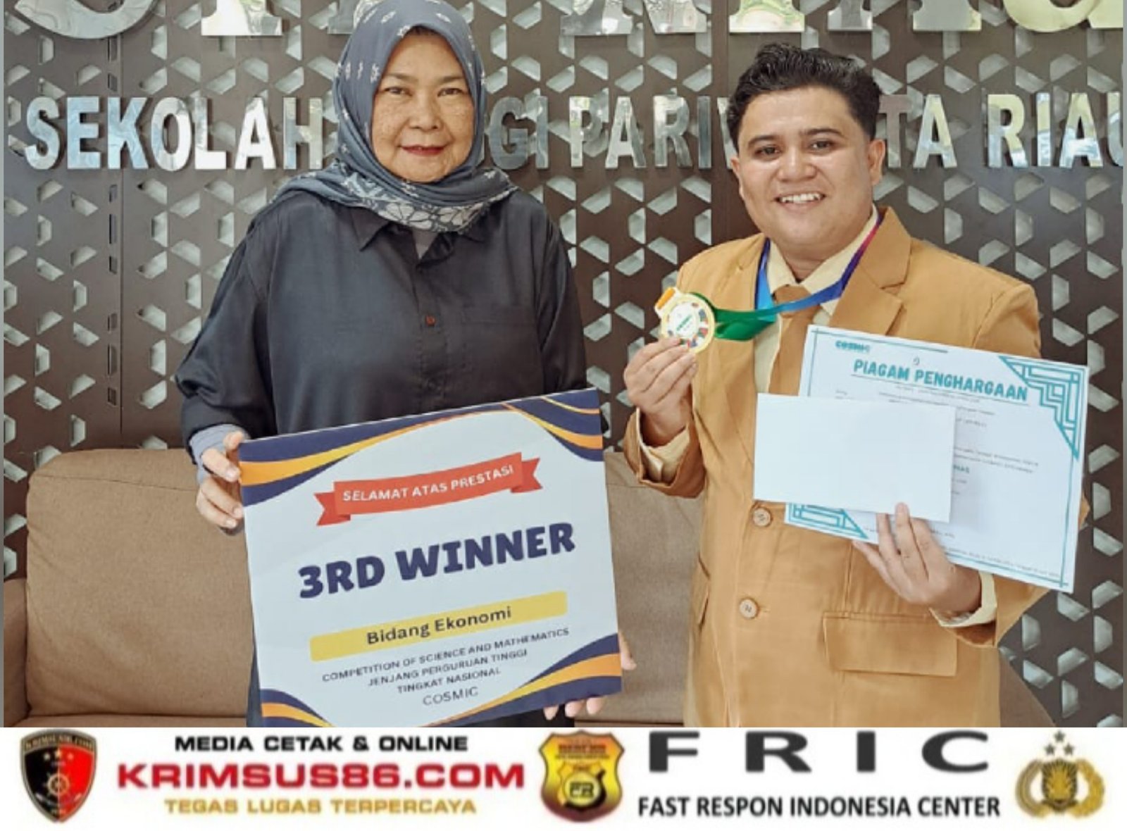 Krimsus86.com, Pekanbaru, 12 Februari 2026 – Kabar membanggakan datang dari Sekolah Tinggi Pariwisata (STP) Riau. Salah satu mahasiswanya, Riszuan Hs dari Program Studi Manajemen Pariwisata, berhasil meraih Juara 3 (3rd Winner) dalam ajang Competition of Science and Mathematics jenjang perguruan tinggi tingkat nasional pada kategori Ekonomi Kreatif.