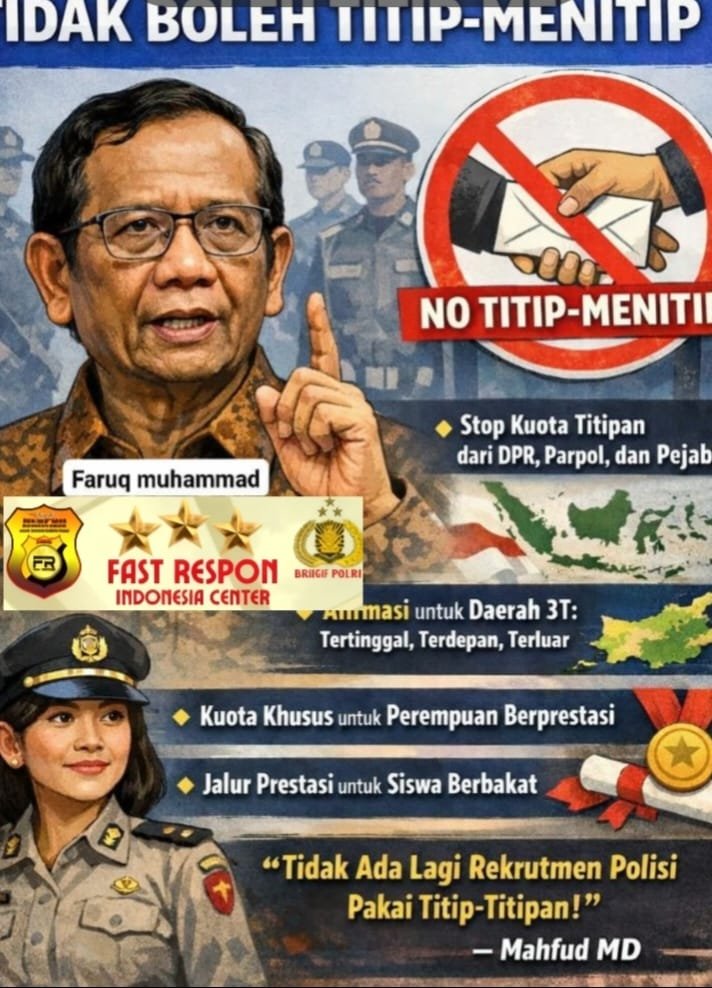 Krimsus86.com, Jakarta — Anggota Komisi Percepatan Reformasi Polri (KPRP), Prof. Dr. Mahfud MD, mengungkapkan bahwa salah satu kesepakatan penting dalam agenda reformasi Polri adalah penghapusan praktik titip-menitip dalam rekrutmen anggota kepolisian di masa mendatang.