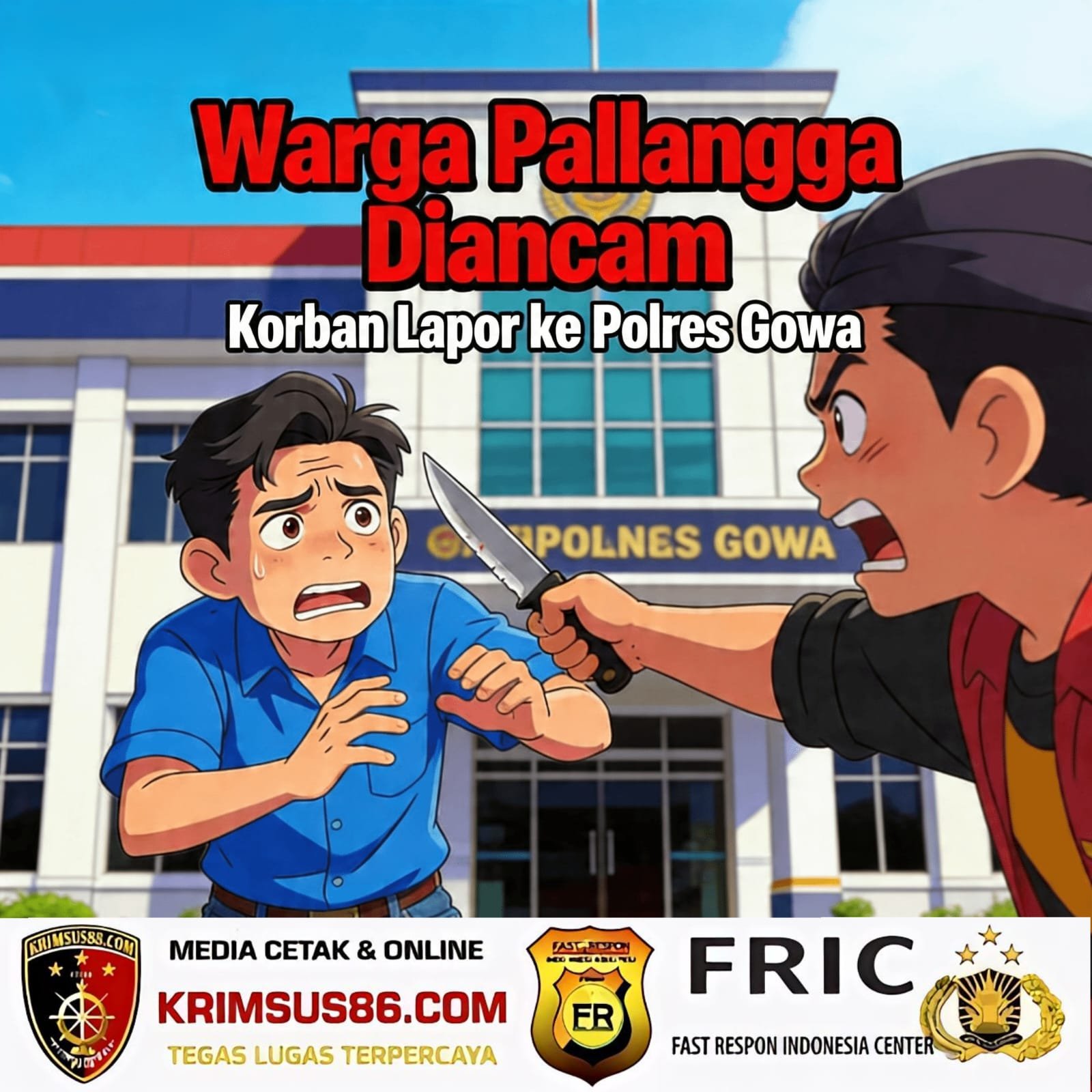 Krimsus86.com Gowa, 20 April 2026 – Sebuah dugaan percobaan pemukulan dan pengancaman menggunakan senjata tajam terjadi di Dusun Kampung Parang, Desa Pallangga, Kecamatan Pallangga, Kabupaten Gowa, pada Senin sore (20/4/2026). Korban yang bernama Dg. Manye mengaku mengalami intimidasi serius setelah seorang oknum berinisial (A) diduga mencoba memasuki rumahnya sambil membawa senjata tajam jenis parang.
