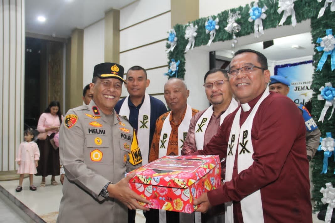 Dalam kunjungannya, Wakapolda Sulteng tidak hanya melakukan pengecekan pengamanan, tetapi juga menyempatkan diri menyerahkan bingkisan kepada pihak gereja. Penyerahan tersebut sebagai bentuk ucapan selamat Hari Natal sekaligus wujud kepedulian aparat keamanan kepada umat Nasrani yang akan melaksanakan ibadah.