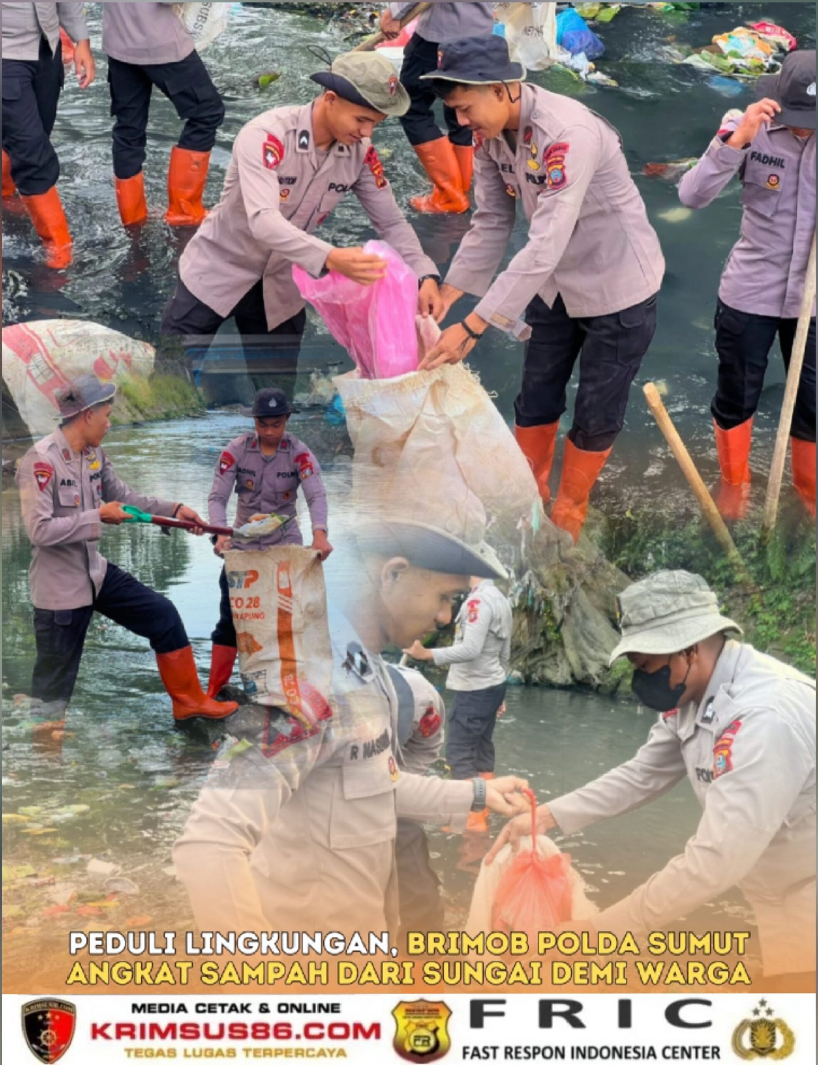 Krimsus86.com, MEDAN — Wujud kepedulian terhadap kelestarian lingkungan dan keselamatan masyarakat terus ditunjukkan oleh Satuan Brimob Polda Sumatera Utara. Pada Senin, 9 Februari 2026, personel Kompi 3 Batalyon A Satuan Brimob Polda Sumut melaksanakan kegiatan kurve bakti sosial dengan membersihkan aliran sungai di Jalan Bhayangkara, Kecamatan Medan Tembung, tepat di sekitar Mako Satuan Brimob Polda Sumut.