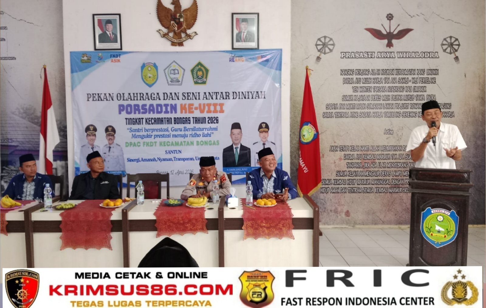 Krimsus86.com Bongas, 12 April 2026 — Camat Bongas, Dedi Irawan, S.Sos., STP., secara resmi membuka kegiatan Pekan Olahraga dan Seni Diniyah (PORSADIN) ke-VIII tingkat Kecamatan Bongas yang dilaksanakan di Aula Kecamatan Bongas, Minggu (12/04).