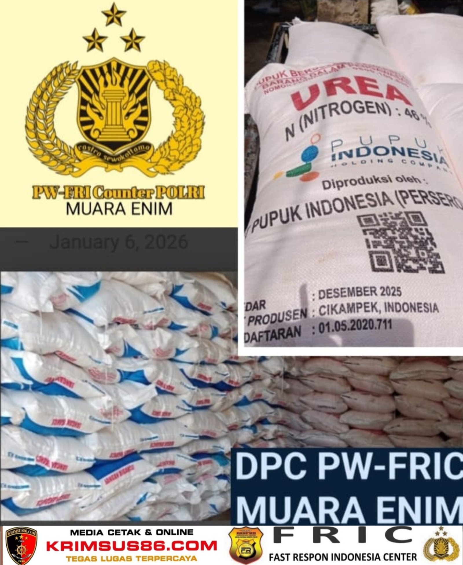 Ketua PW-FRIC Kabupaten Muara Enim, Dapid KBR, menegaskan bahwa pihaknya akan turut mengawal dan mengawasi pendistribusian pupuk bersubsidi di wilayah Kabupaten Muara Enim.